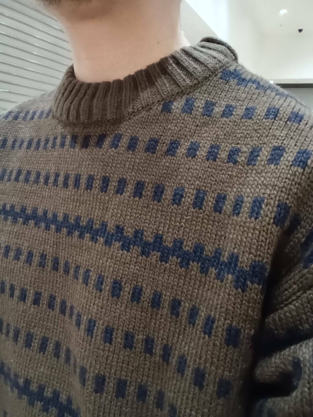 全身を茶系の色で統一した渋めなニットスタイルです。