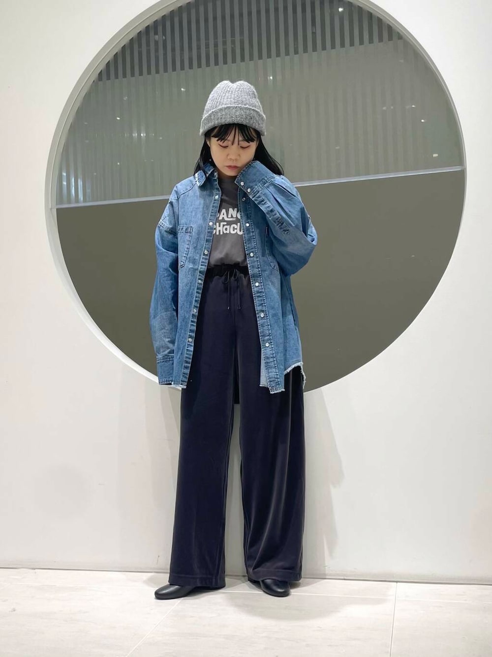プレート付きのニット帽を今回は折って使ってみました!柔らかくてボリュームも出過ぎないので帽子初心者さんにもおすすめです!