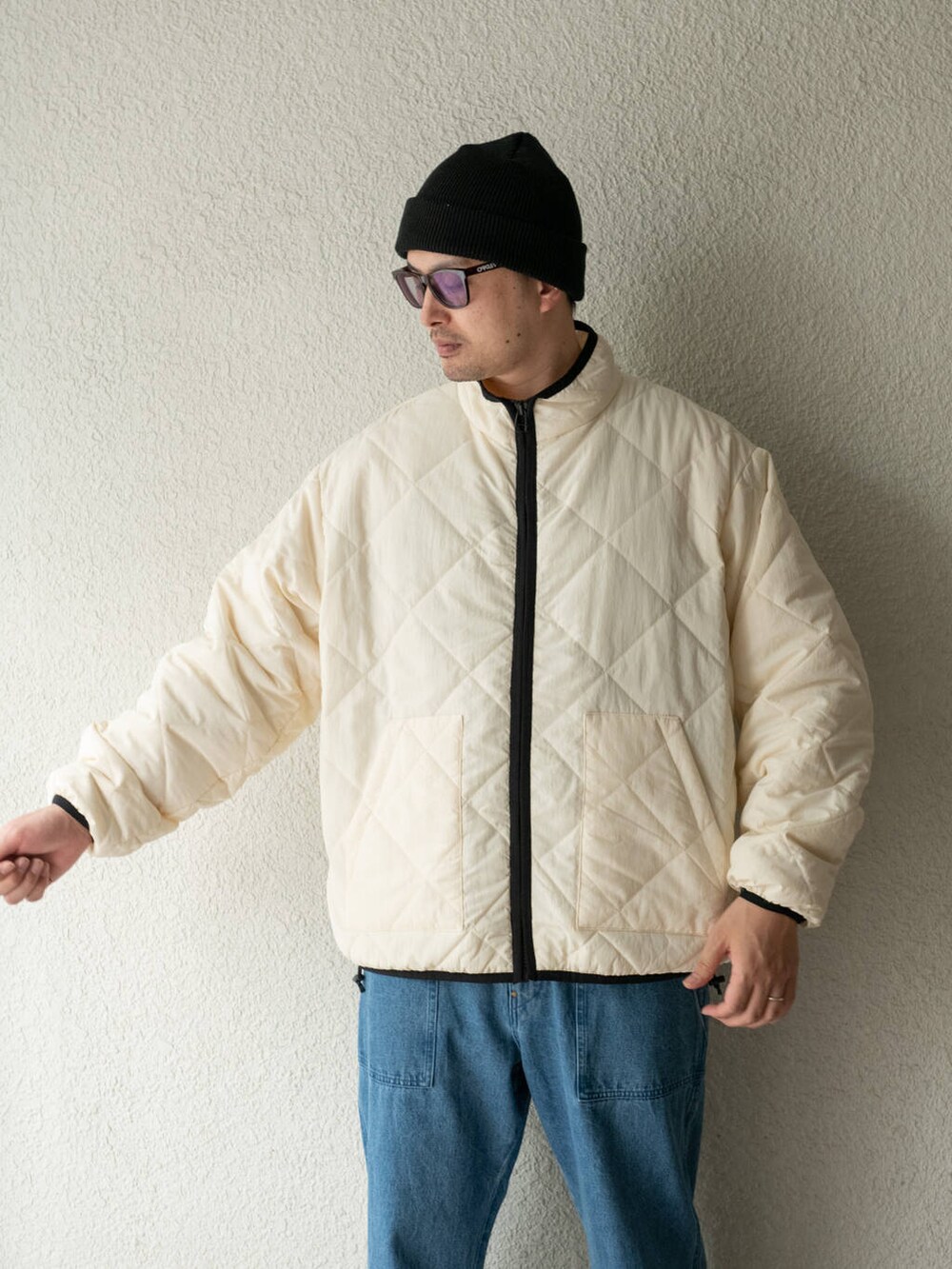 上下ともにややゆとりのあるシルエットを選んで、ストリートな雰囲気を演出しています。