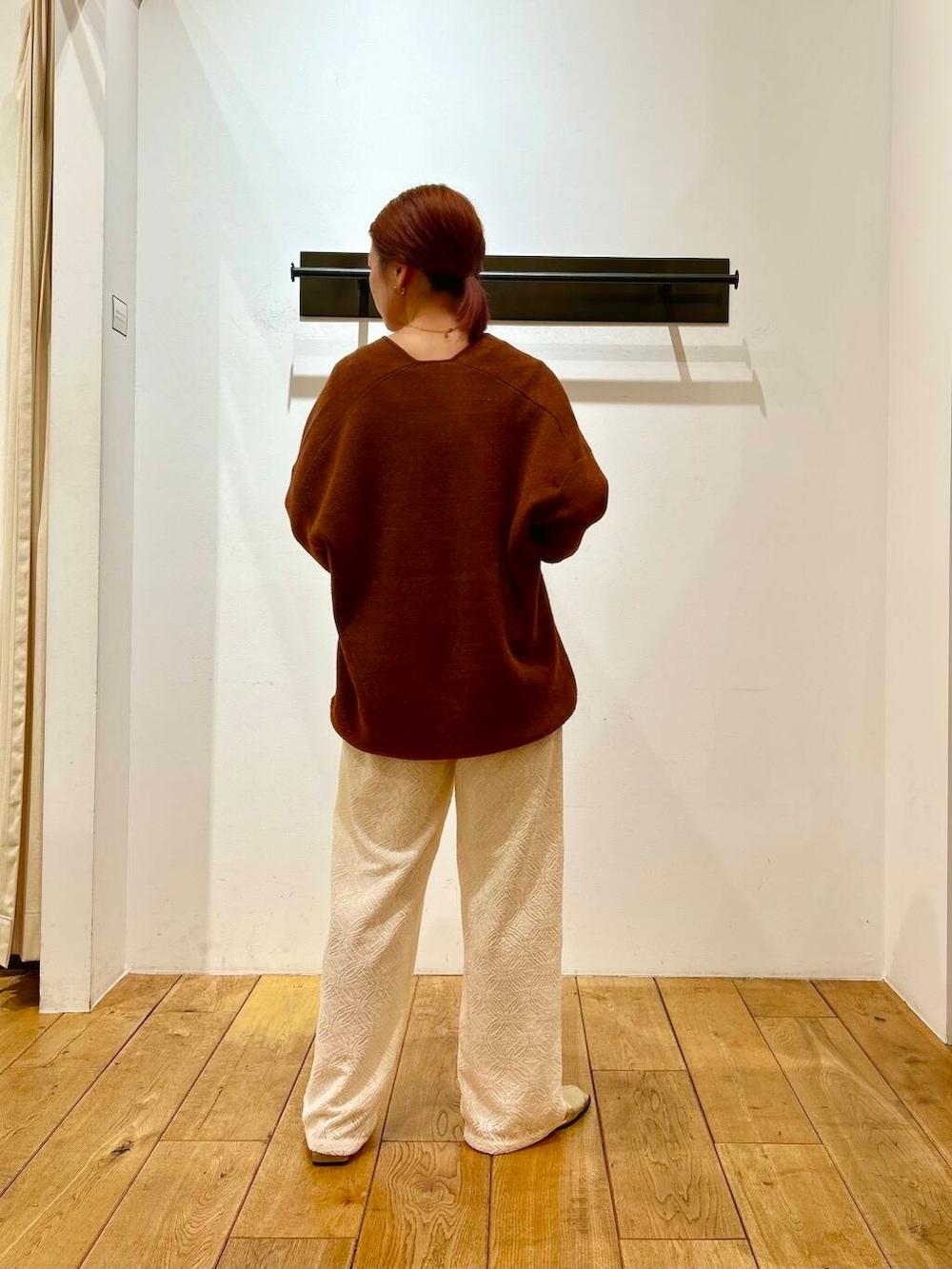 個性的な袖口のニットに可愛いレースパンツを合わせてみました!