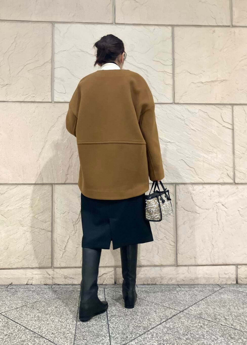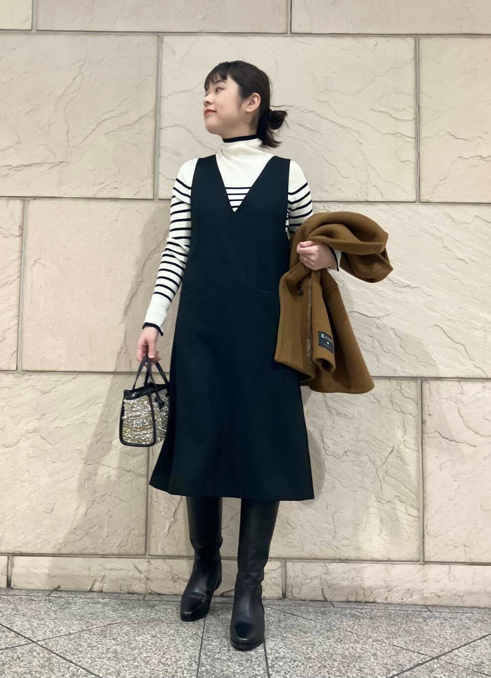 ジャンパーワンピースは38サイズでロングブーツを合わせてちょうどいい丈です◎