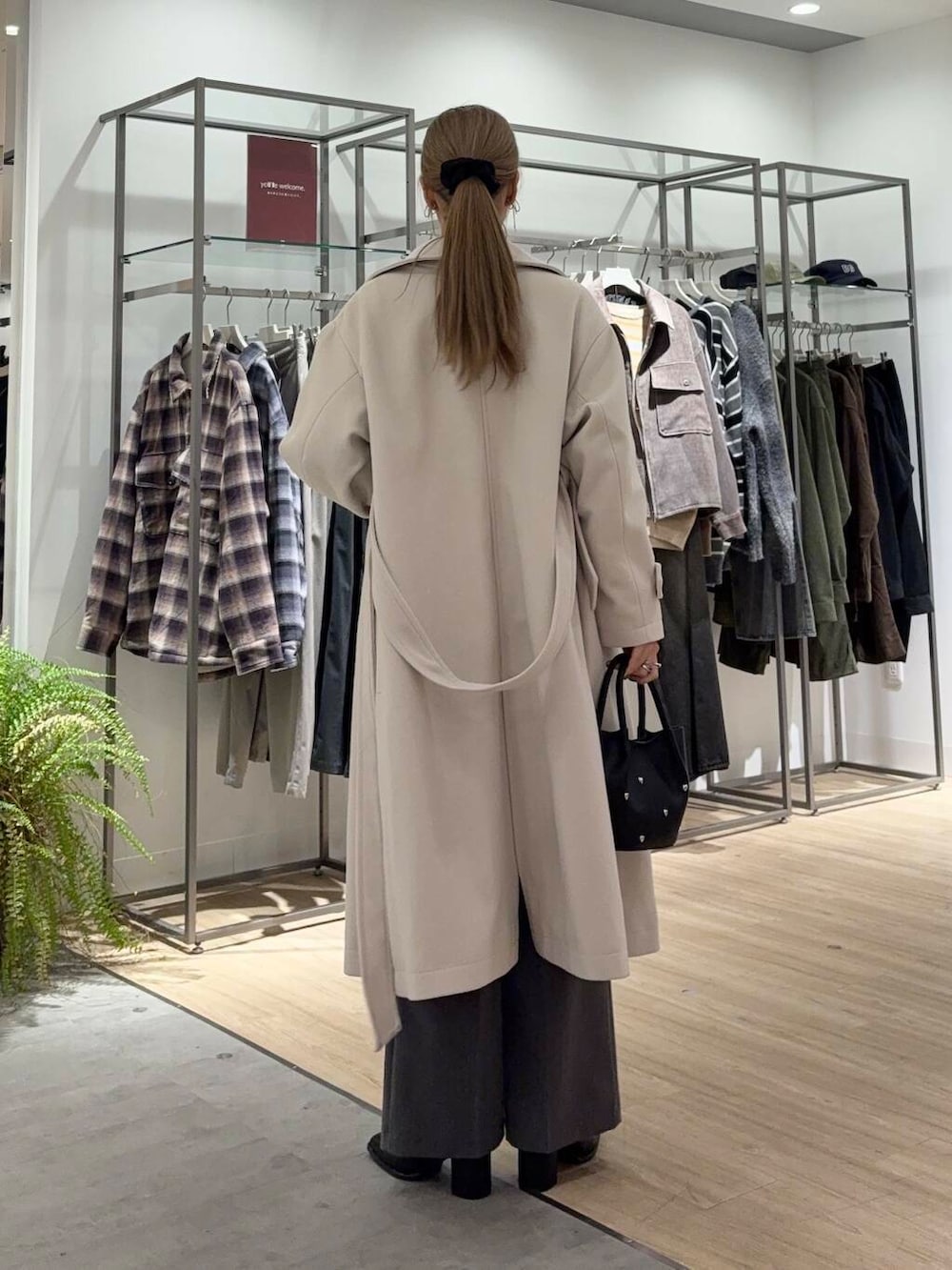 ロングコートは店頭でも大人気のアイテムで、見た目よりも軽くシルエットも程よくゆとりがありさらっと着用できるのもポイントです◎