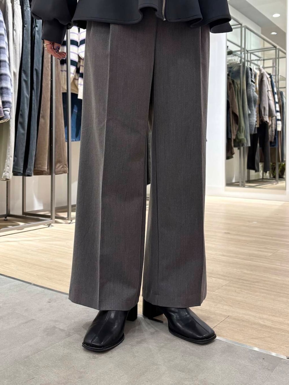 ウエストゴムのワイドパンツは着心地は楽ちんなのに、タックが入っておりシルエットがキレイなのでお仕事着にもとってもお勧めです◎