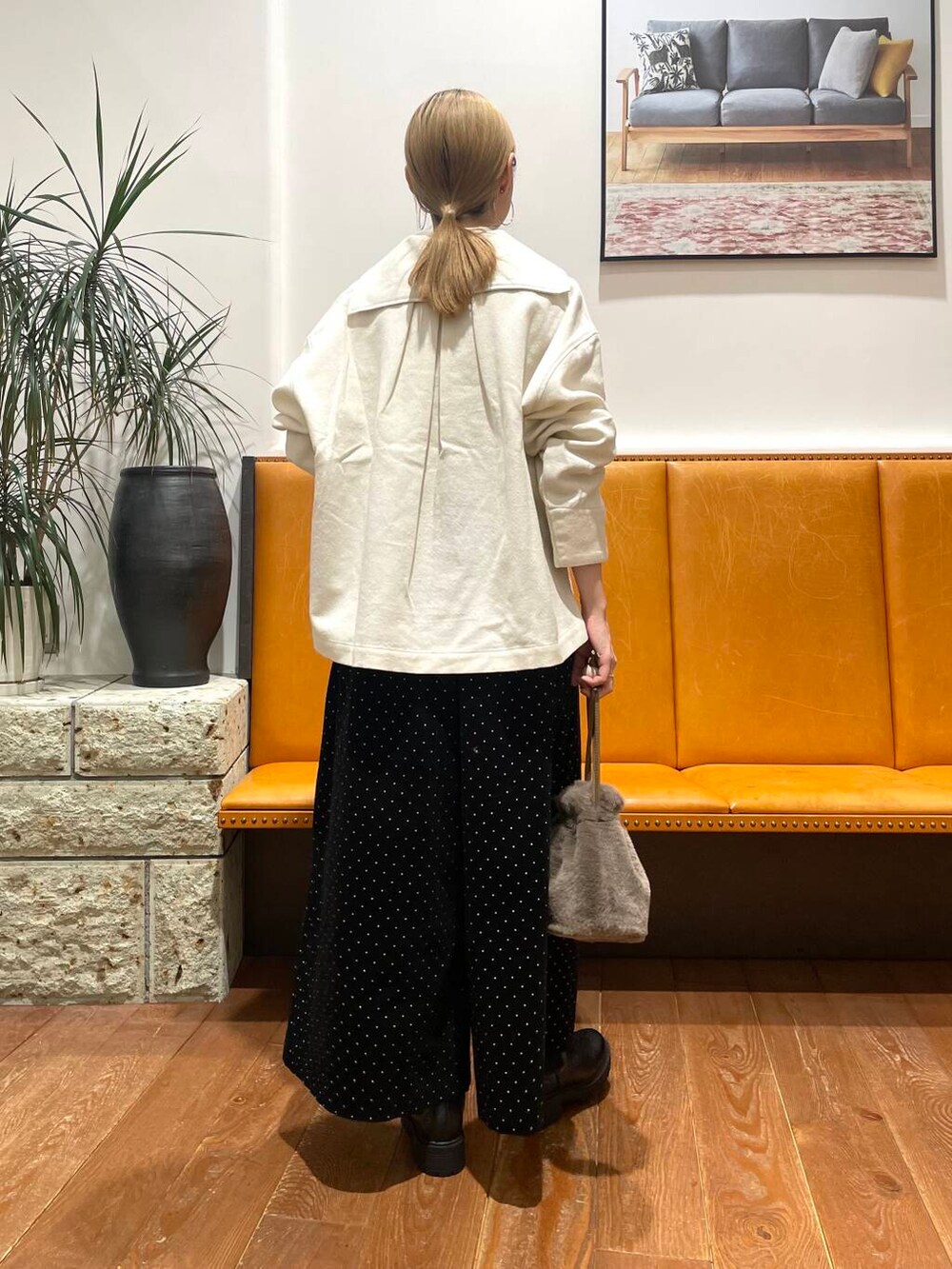 シンプルな合わせでもワイドなシルエットが可愛く、コーデのポイントになります。