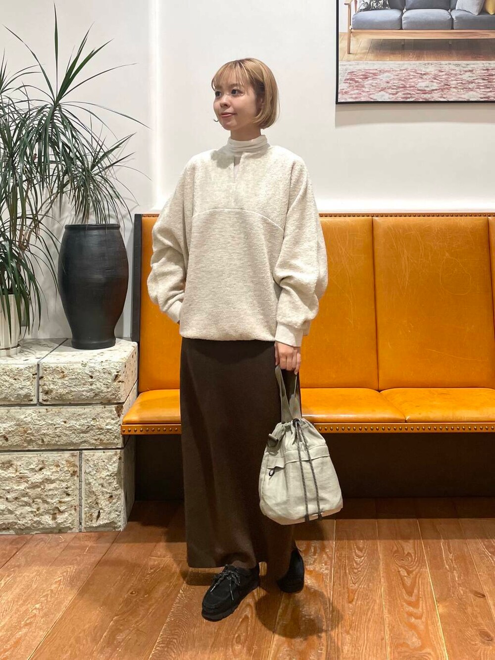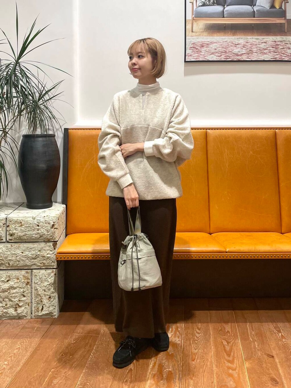 トップスはドルマンスリーブが可愛く、キーネックの為タートル合わせでも詰まった印象にならず合わせて頂けます◎