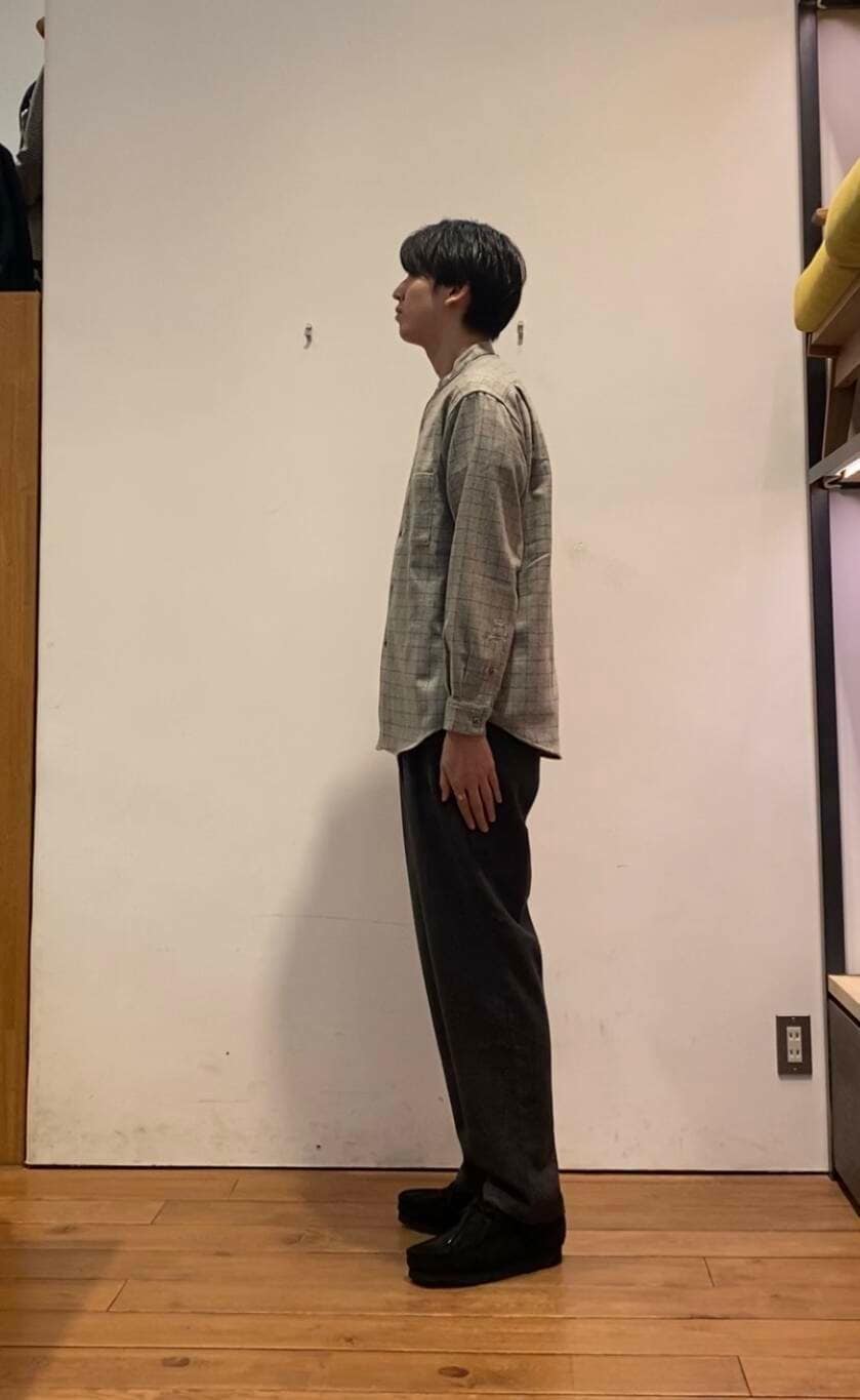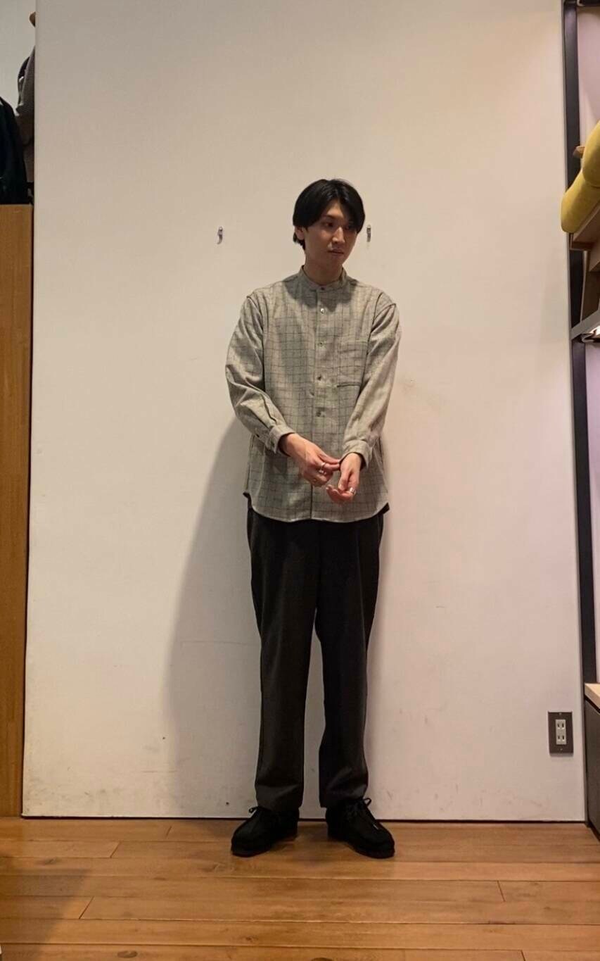 バンドカラーシャツは、ウールも入っており肌触りも柔らかく快適に過ごせる一枚となっております!