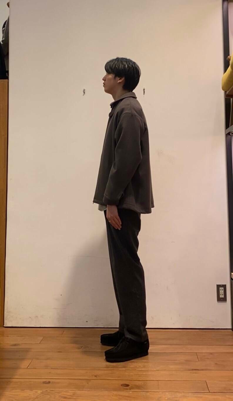 ウールのハリントンジャケットは、温かみのある色合いも特徴的です!