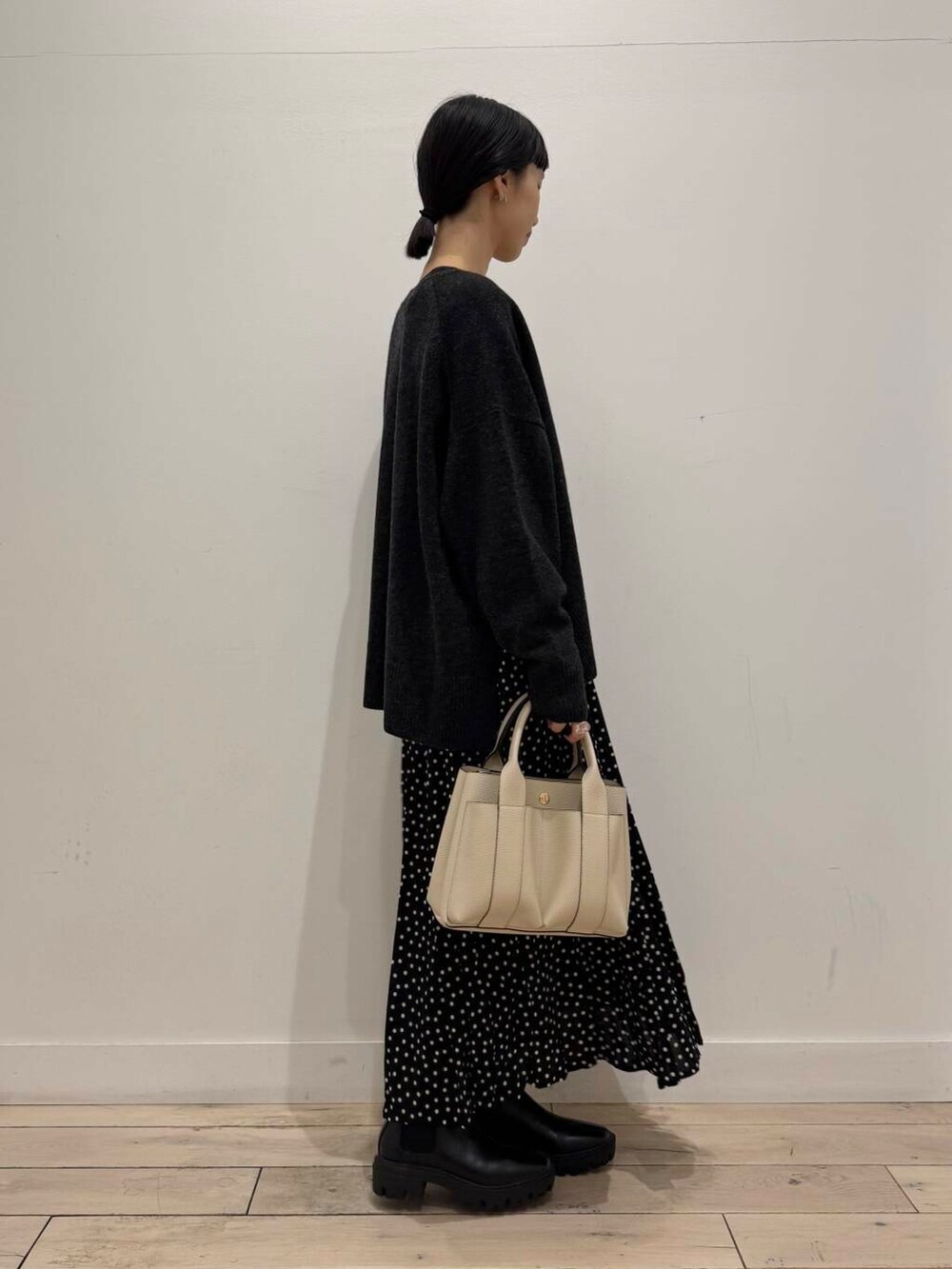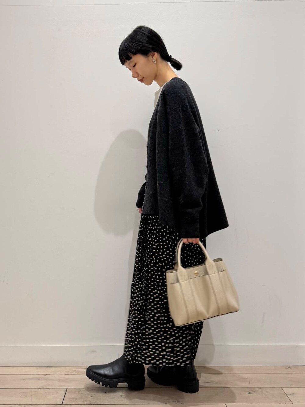 動くとかわいいスカートなのでトップスで押さえないようワイドめなカーディガンで合わせました☺️