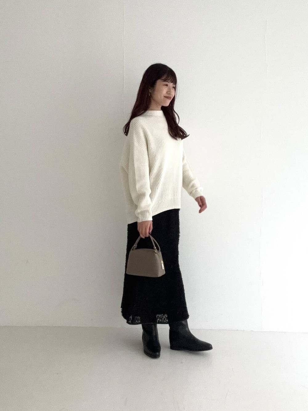 程良く腰回りをカバーする着丈で、OFFのカラーはお顔周りを明るい印象に仕上げてくれます。