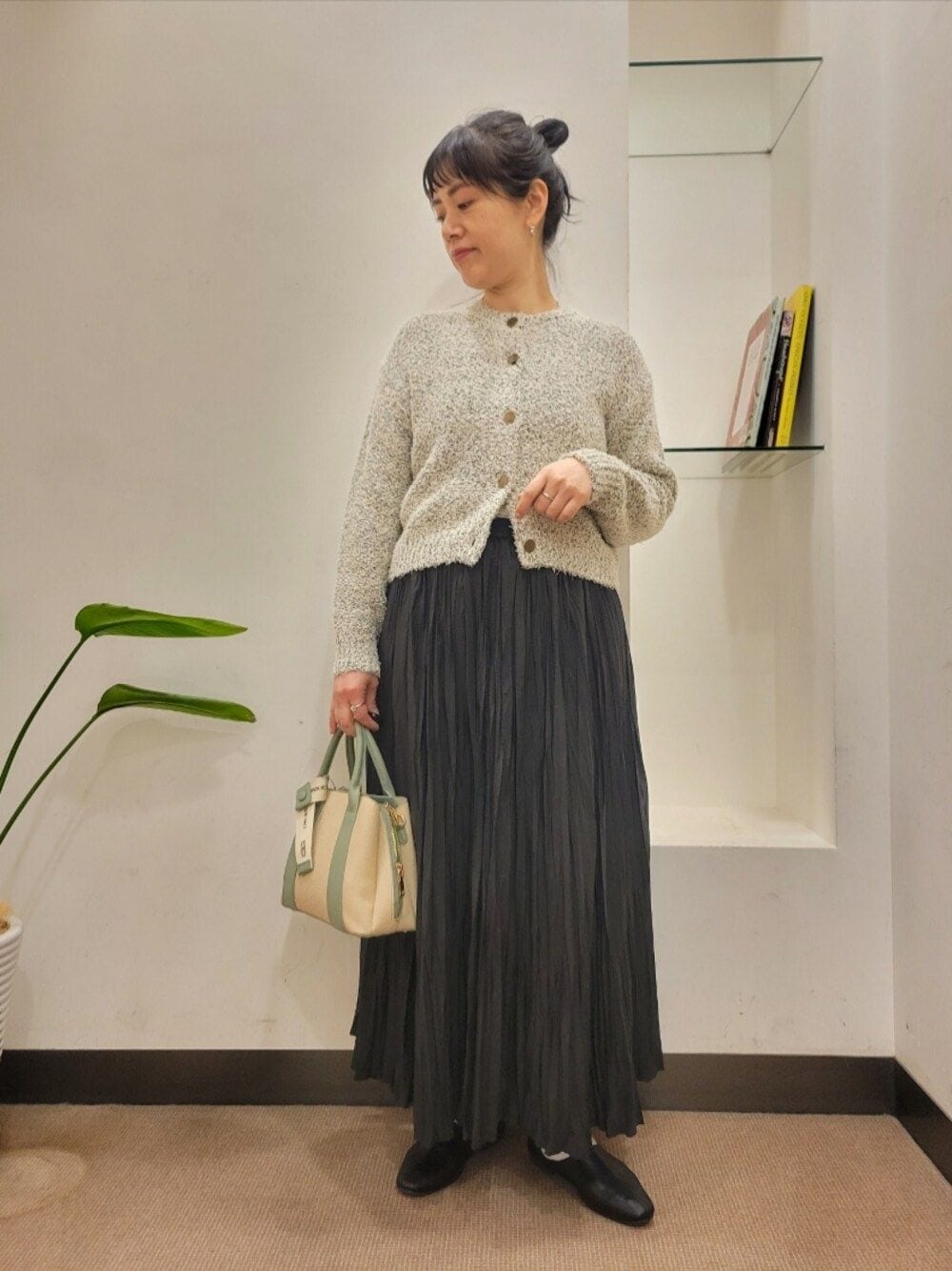 更にスパンコールのバッグでホリデー感をだしました。