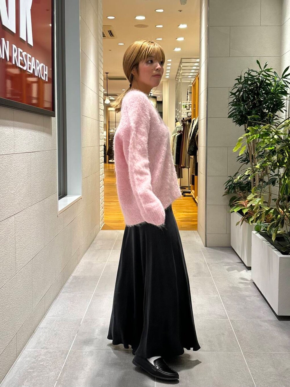 ニットにボリュームがあるのでスカートはオリジナルのキュプラのスカートを合わせてスッキリ着てみました!