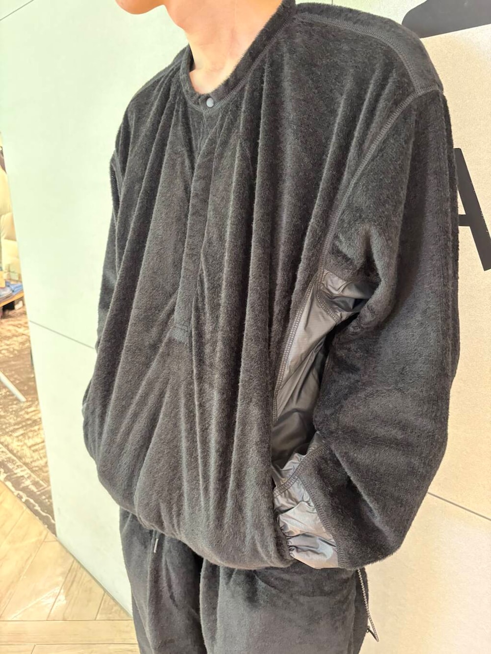スウェットもヘンリーネックなのでラフすぎて見えません!