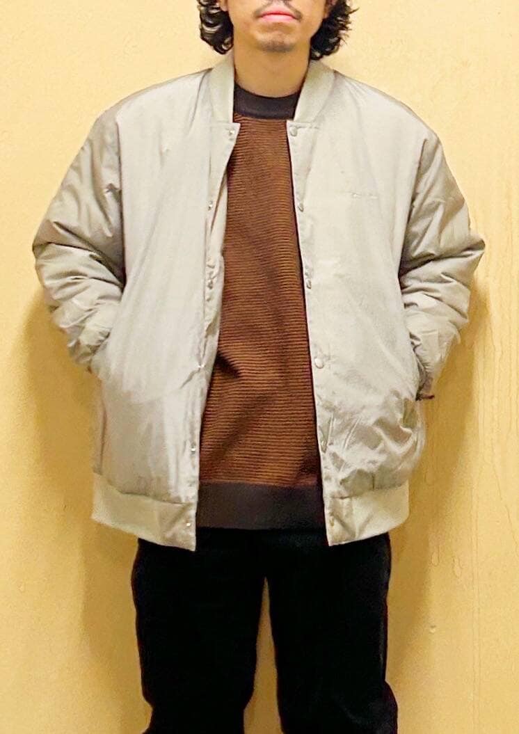 インラインのSTUDIUM DOWN JACKETをベースに、カジュアルに着られるキルト有りの面と、上品な雰囲気で着られるキルト無しの面でリバーシブル仕様に別注。