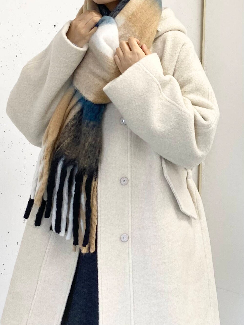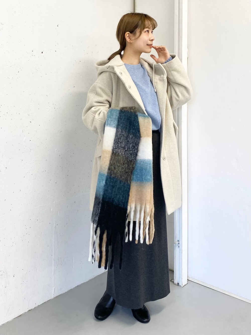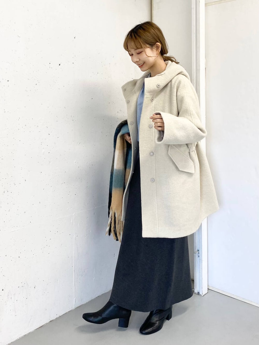 合わせているアウターは、ウエスト部分のシルエット調整ができるので