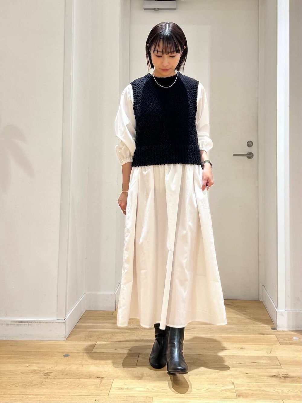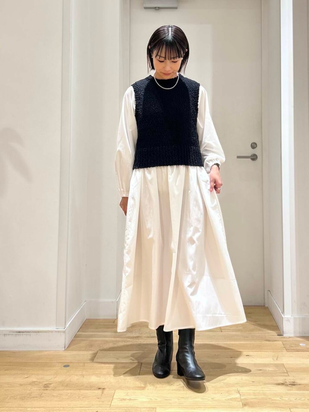 合わせたインナーは、ニットベストとワンピースがセットになったアイテム!