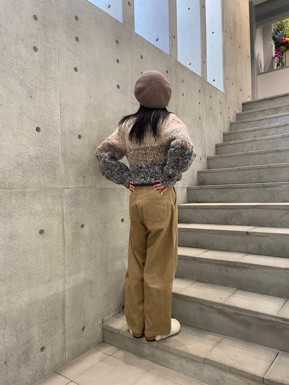 帽子はニットベレーなのでゆったり!