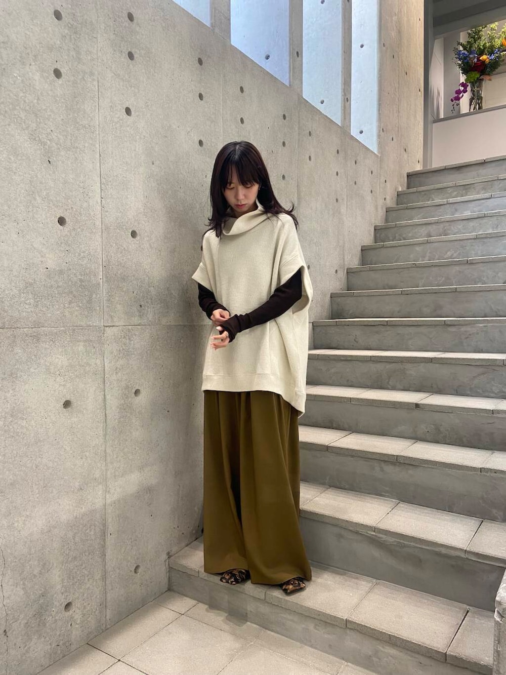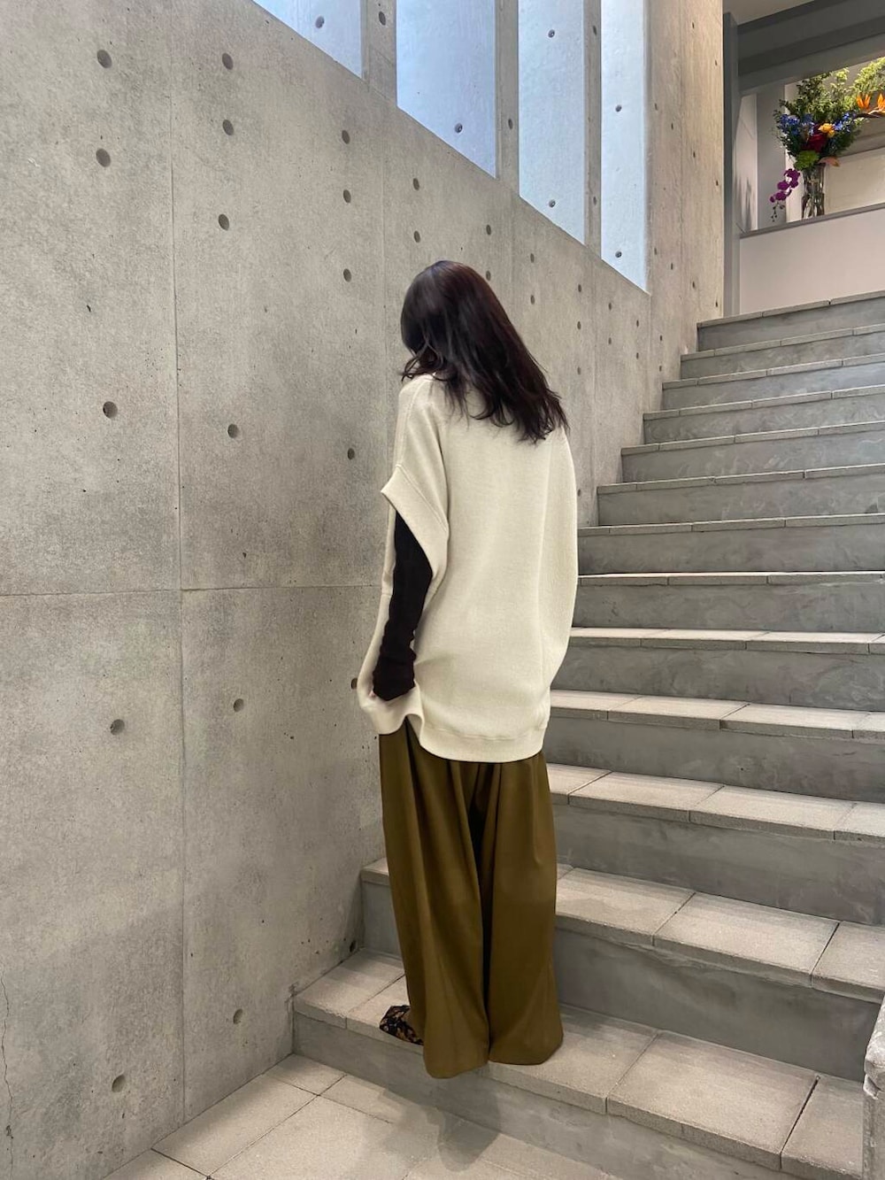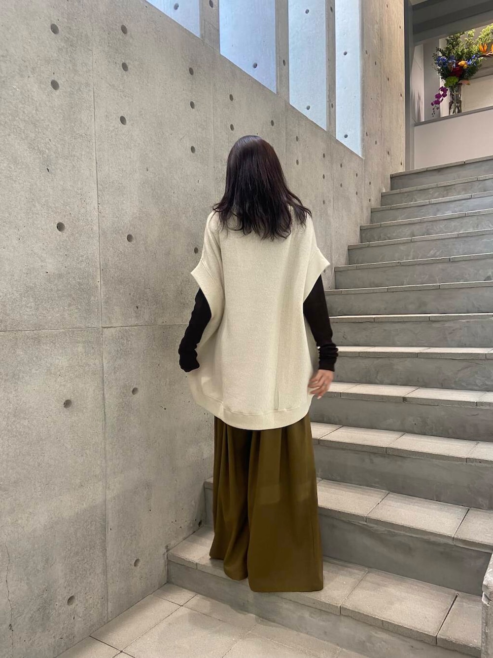 パンツは大きめのタックが入っており、ウエストはゴム+紐なので履き心地👍🏻