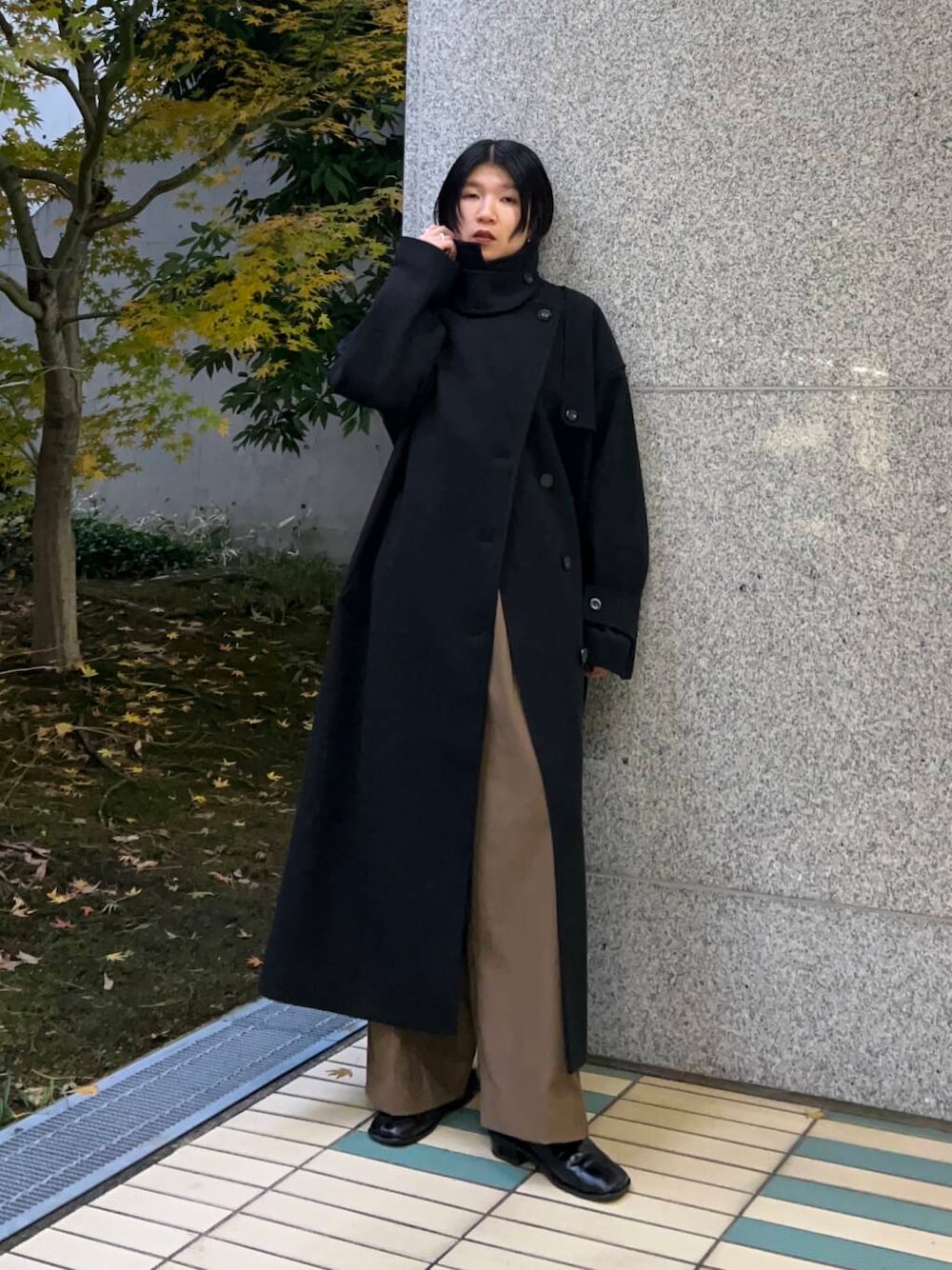 KBFのコートは襟の形が3WAYで変えられるデザイン!