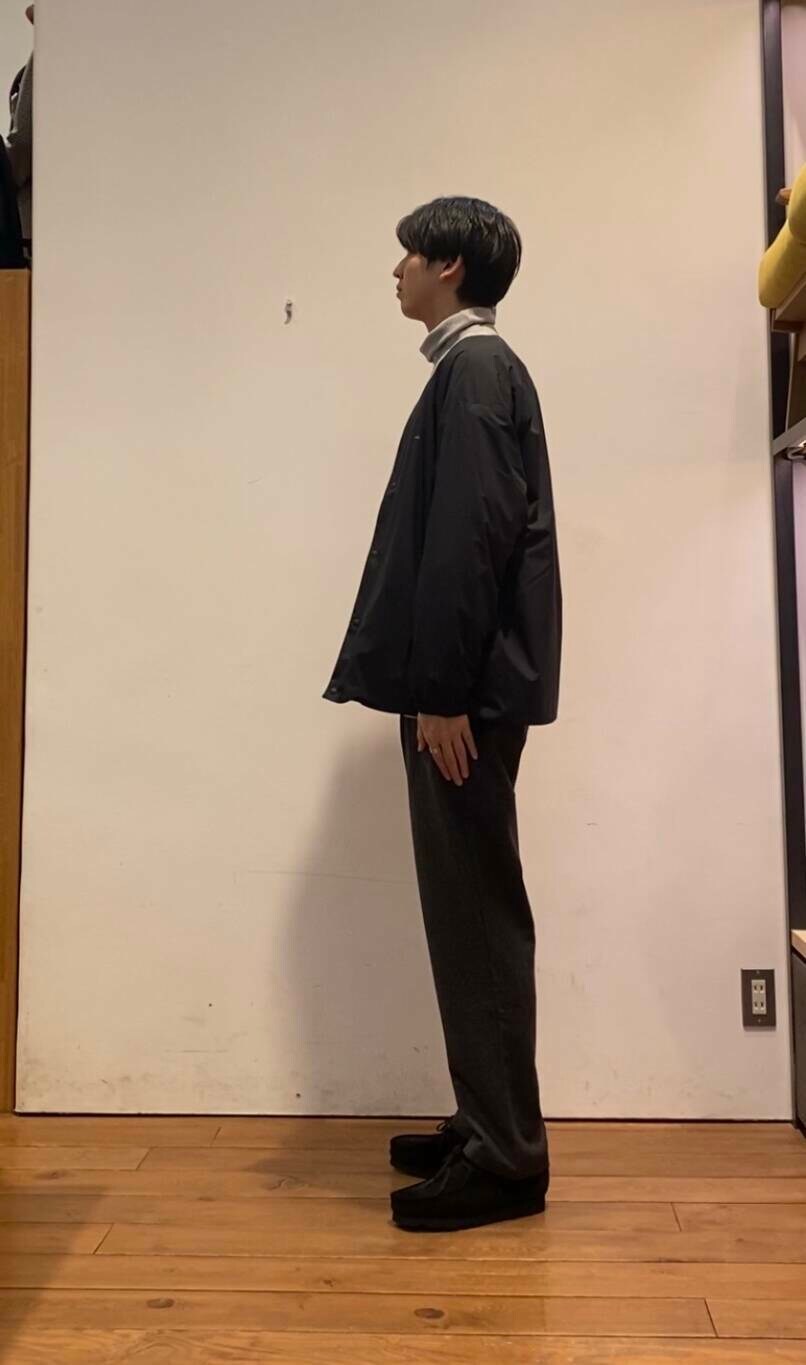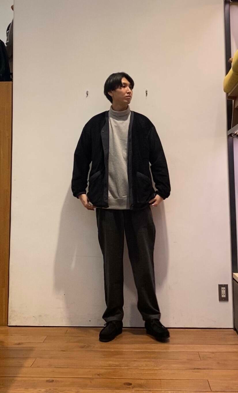 ゆったりとしたシルエットで一枚でも様になりますが、今回のような首元がスッキリとしたアウターと合わせるといいですね!