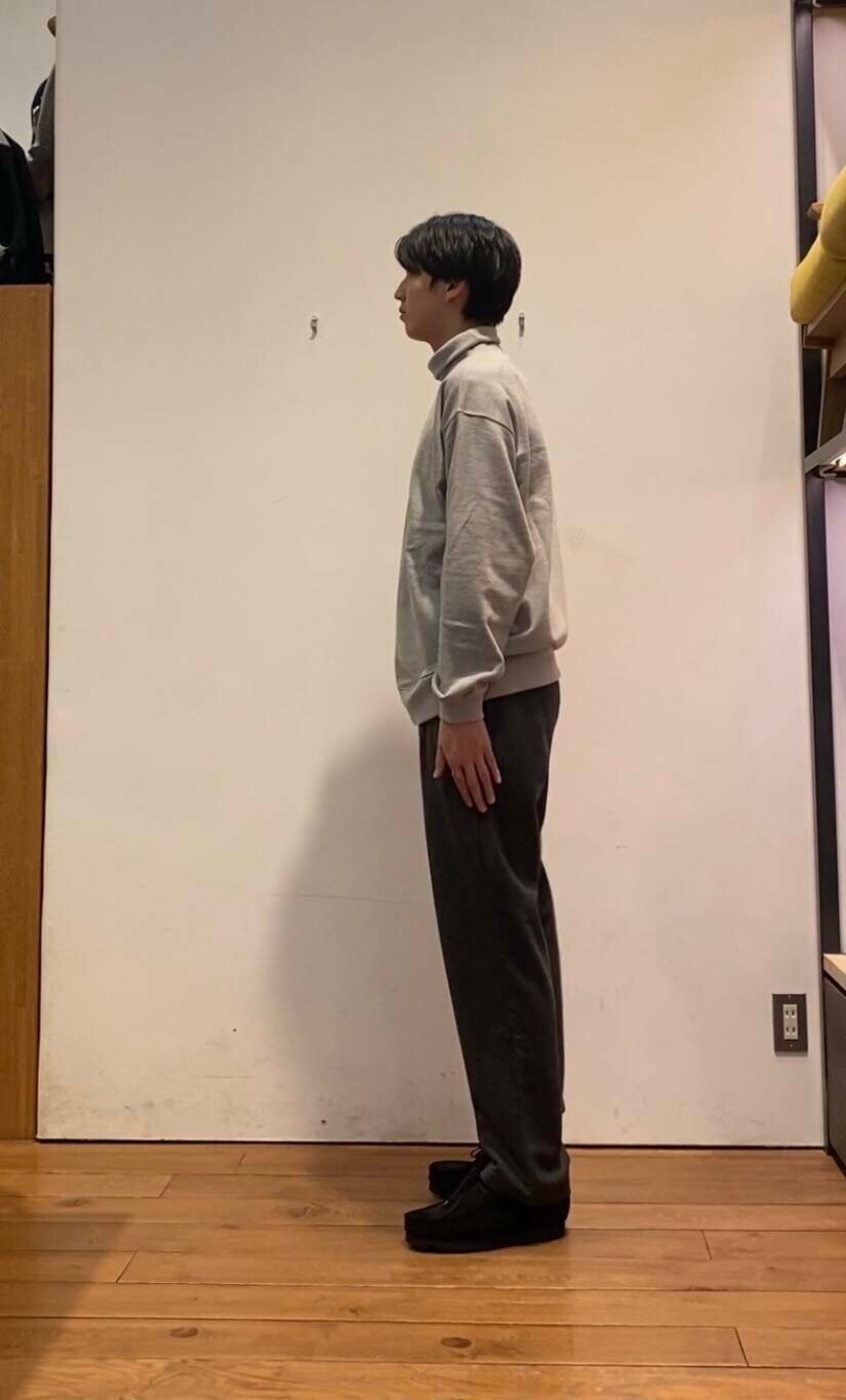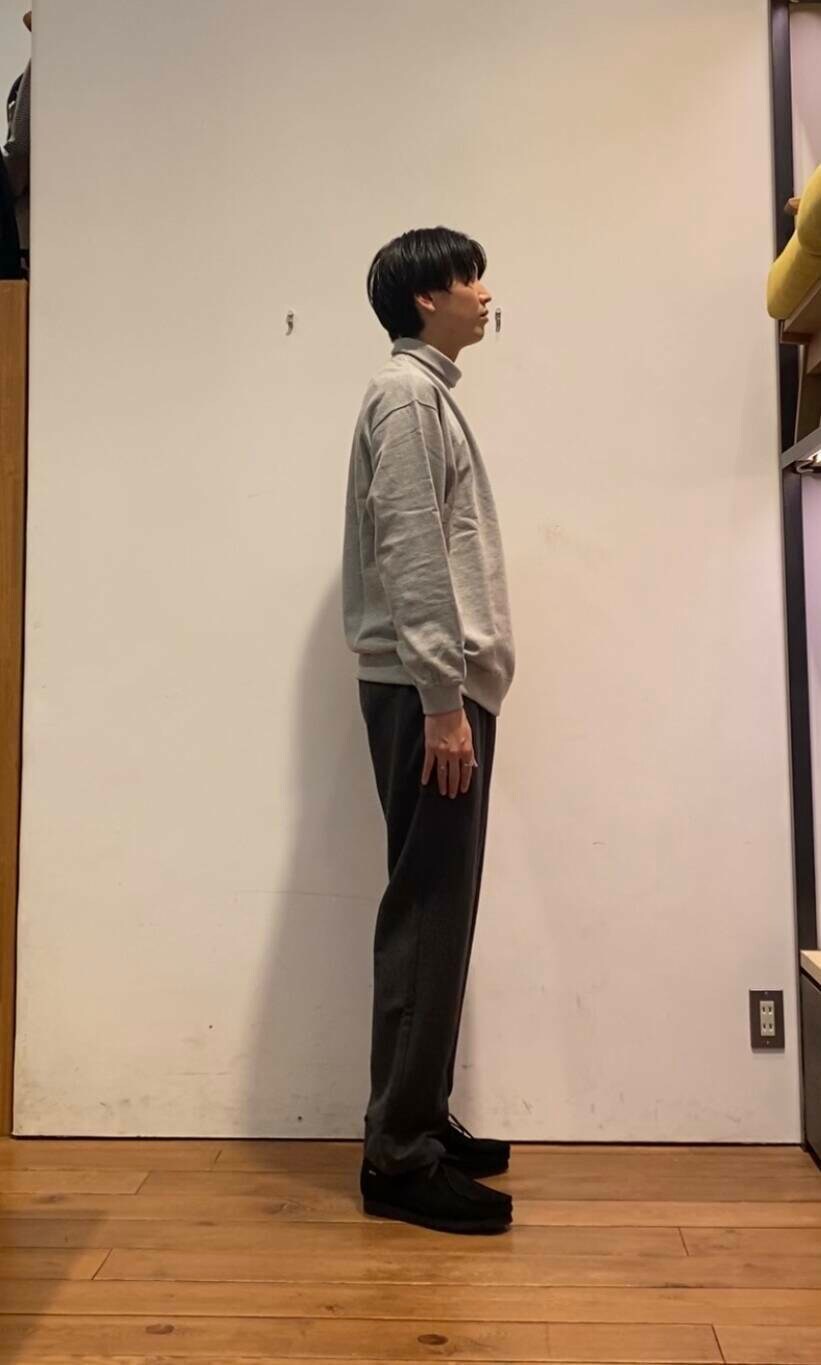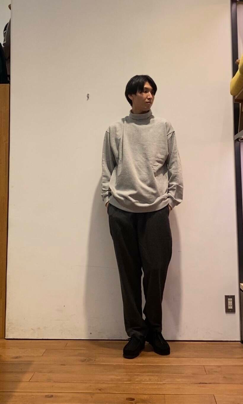 タートルネックのスウェットは、コーディネートのアクセントになること間違いなしです!