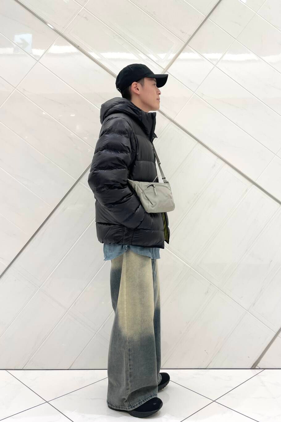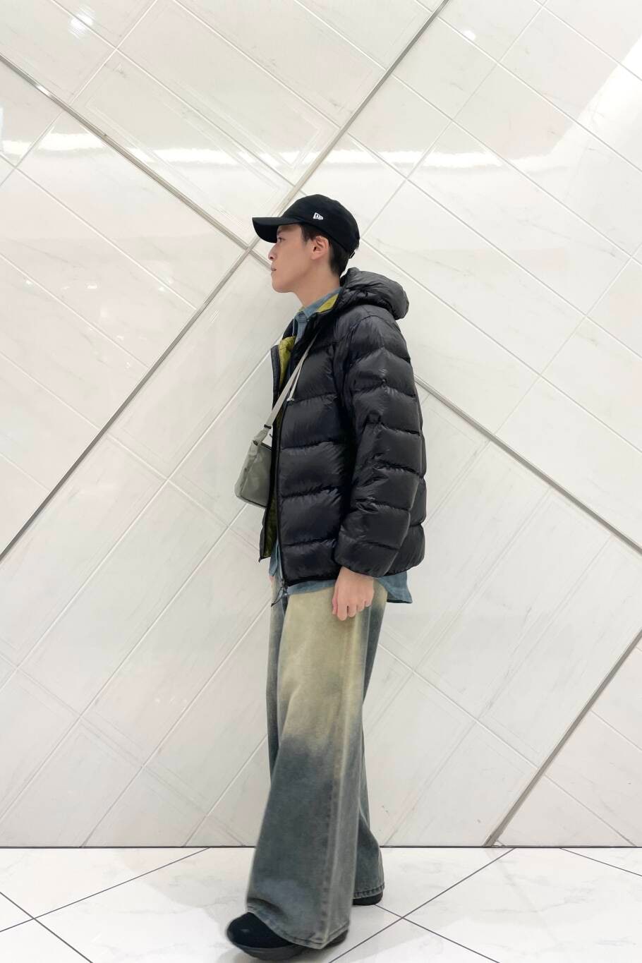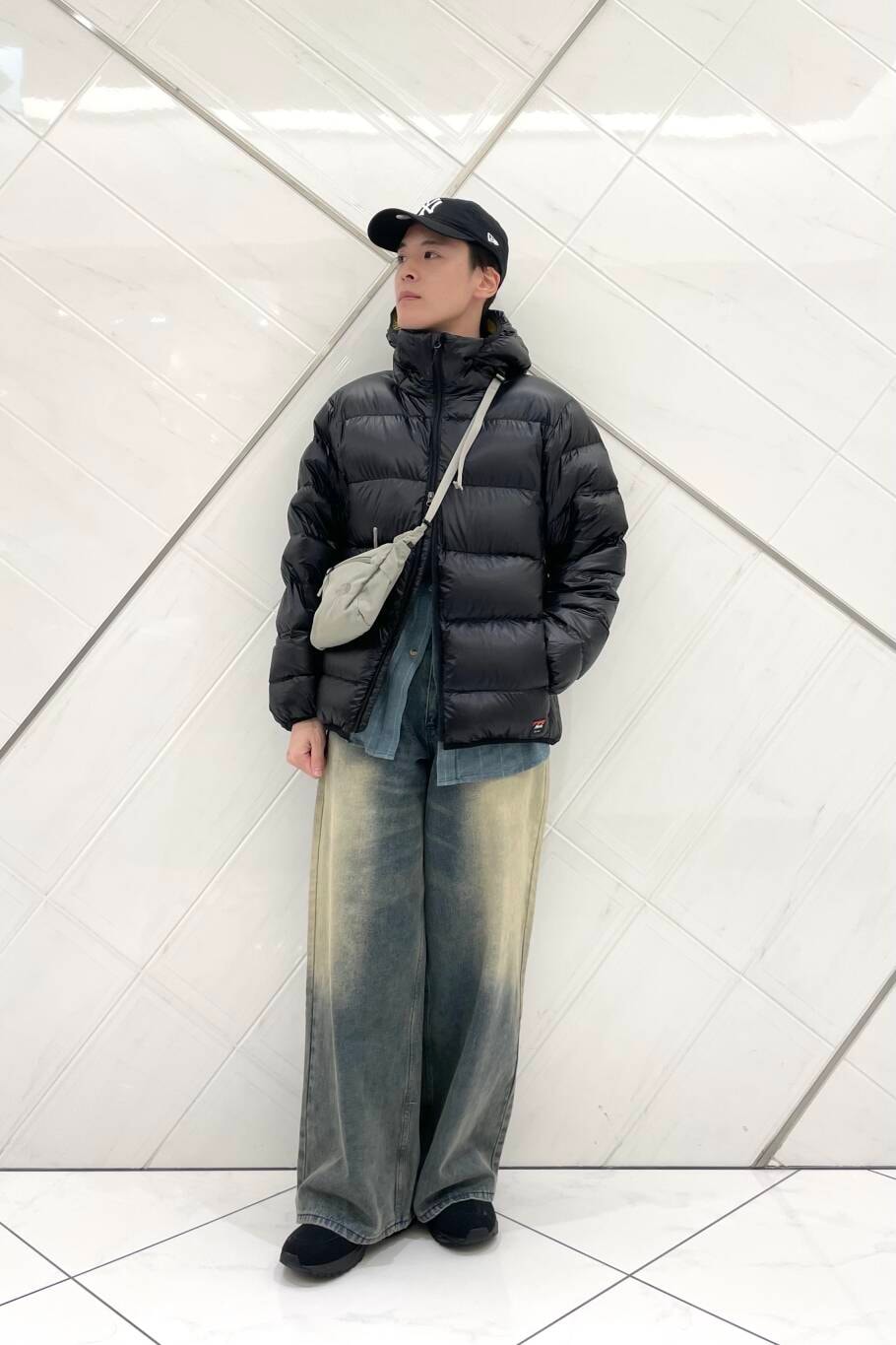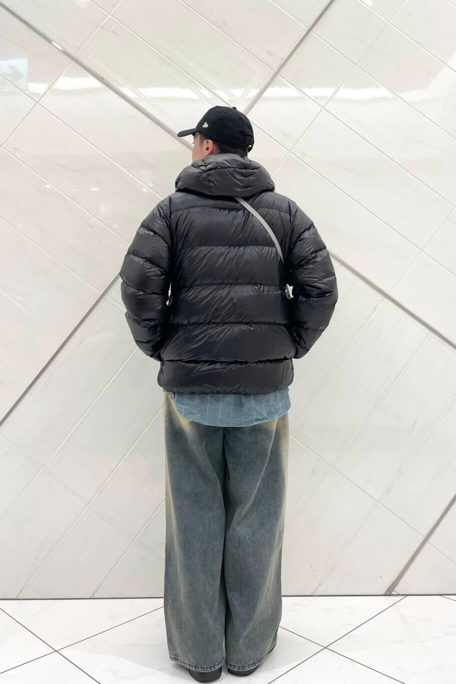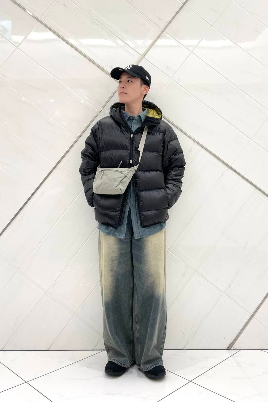 EKAL×NANGAの別注ダウンジャケットを着用したスタイリングです。