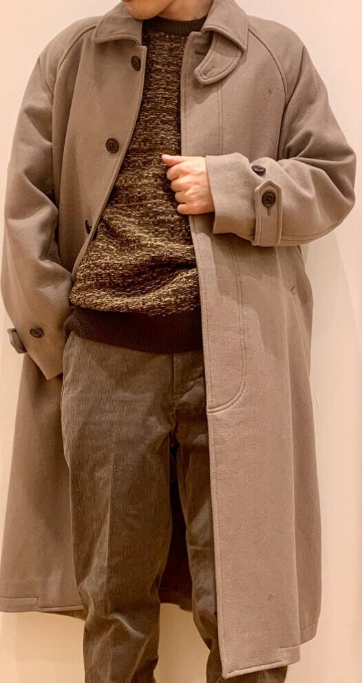 ニットは温かみがある色合いです。コートはシンプルなデザインでシンプルなコーディネート、カジュアルなコーディネートどちらにも合わせやすいです。
