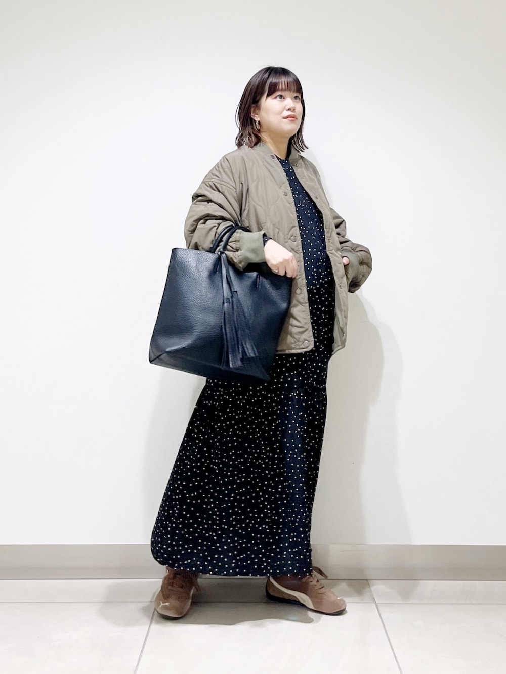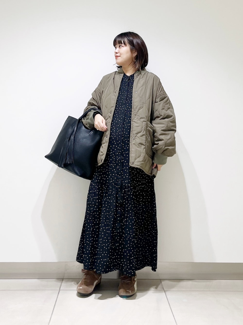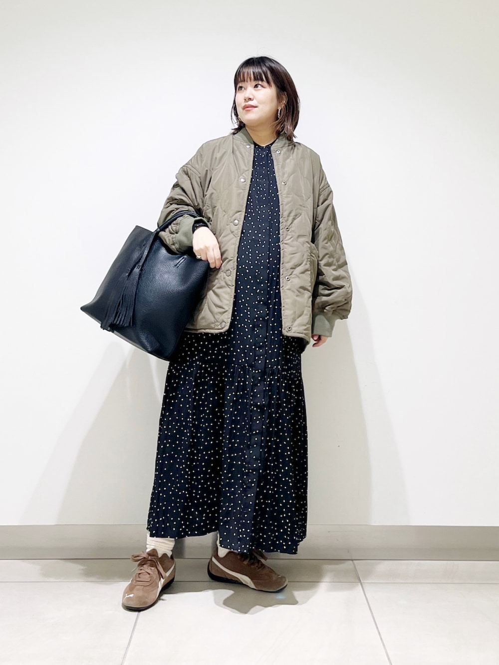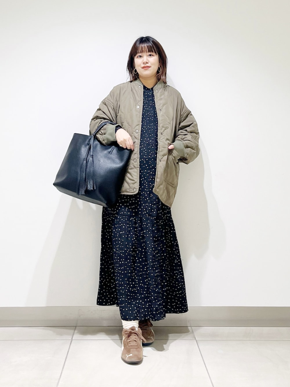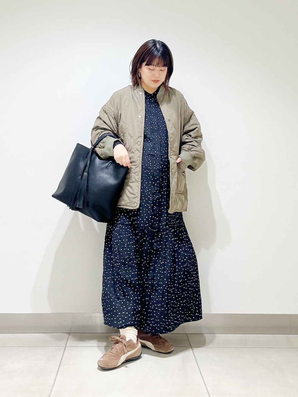 細かなドット柄が女性らしいワンピースと合わせてみました。