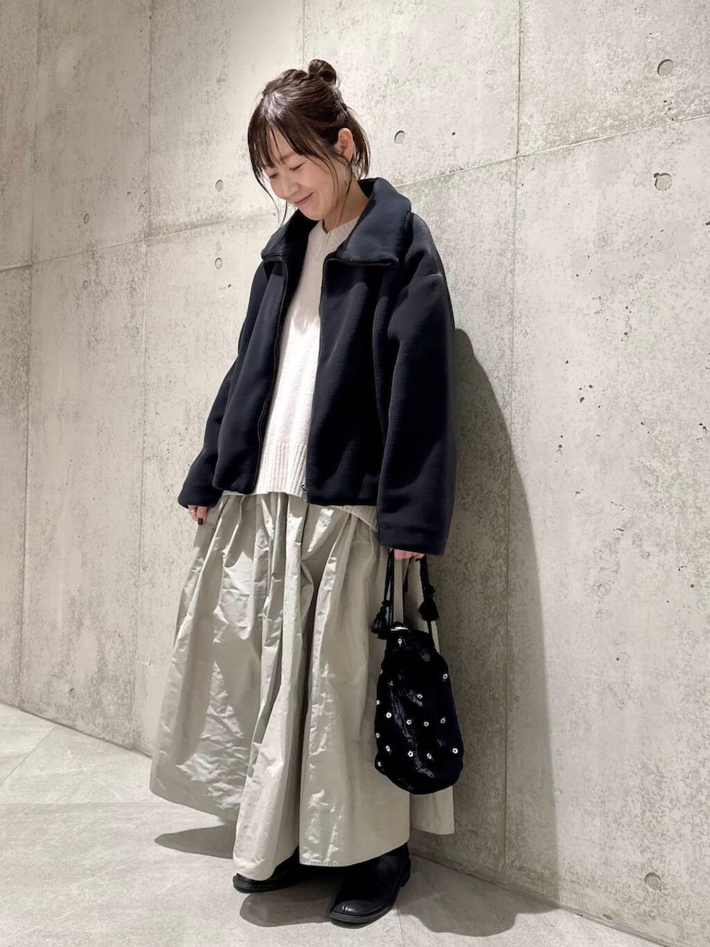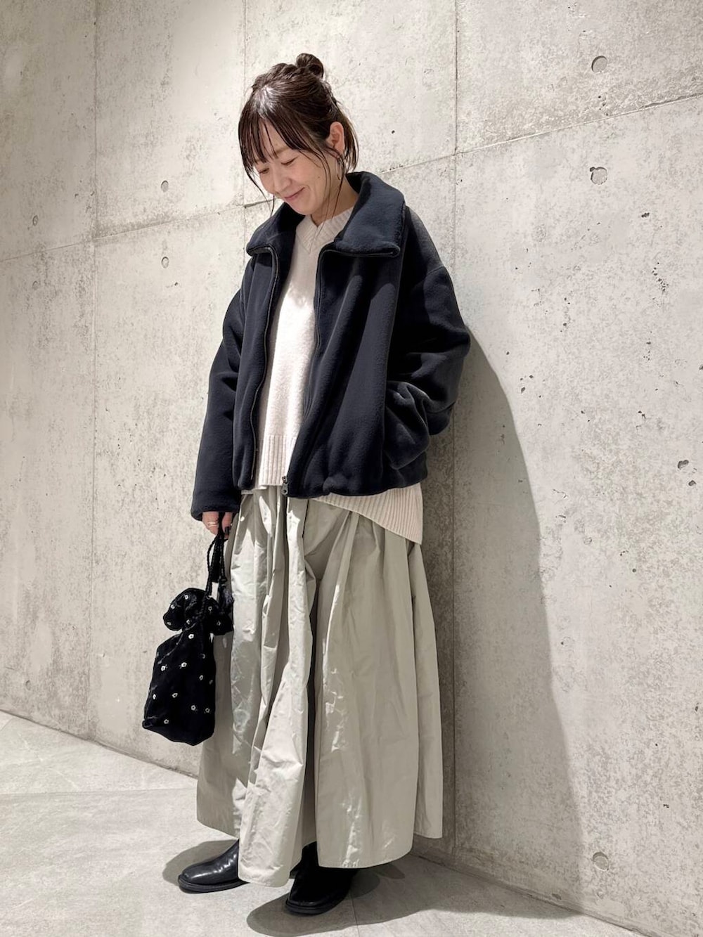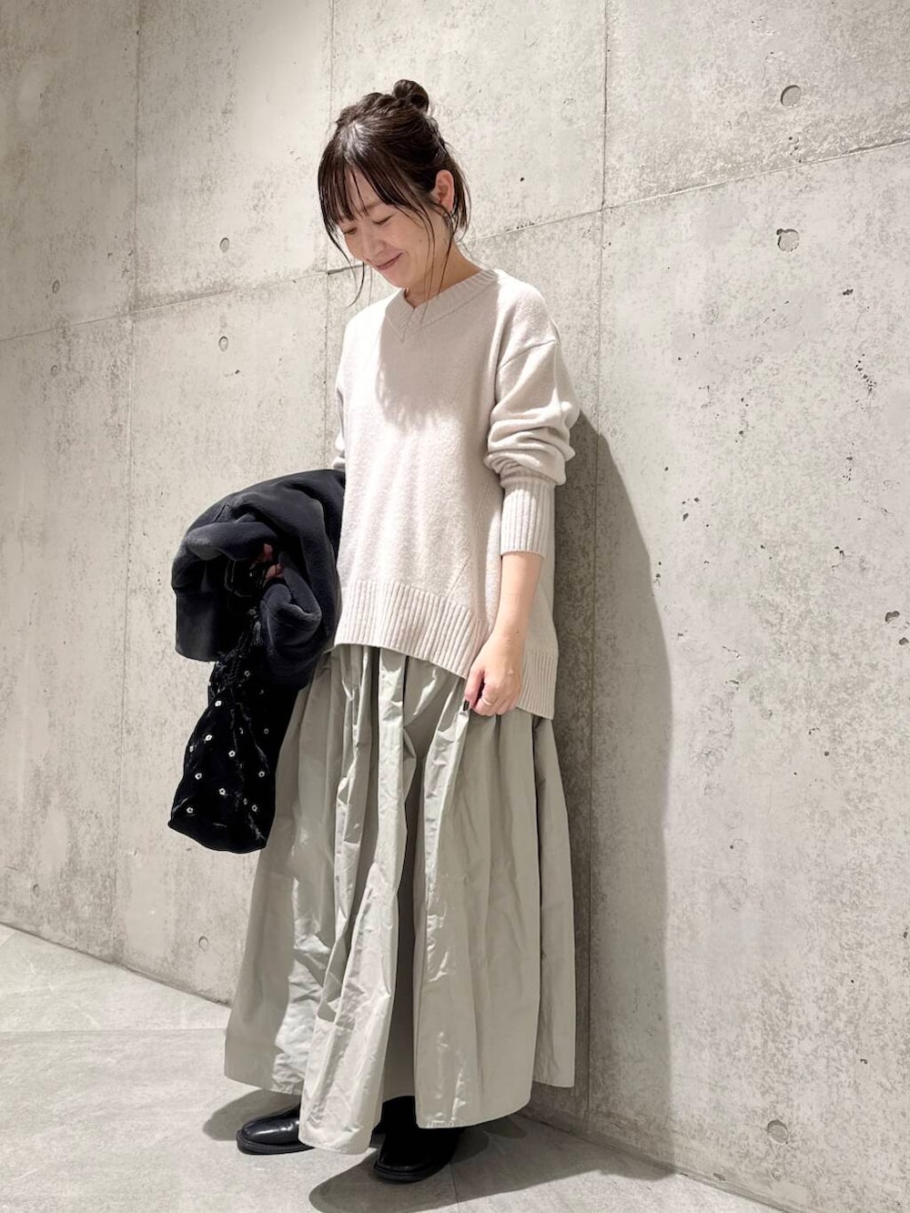 今回は、ボリューム感たっぷりのフレアスカートと合わせた、フェミニンなコーディネートです。