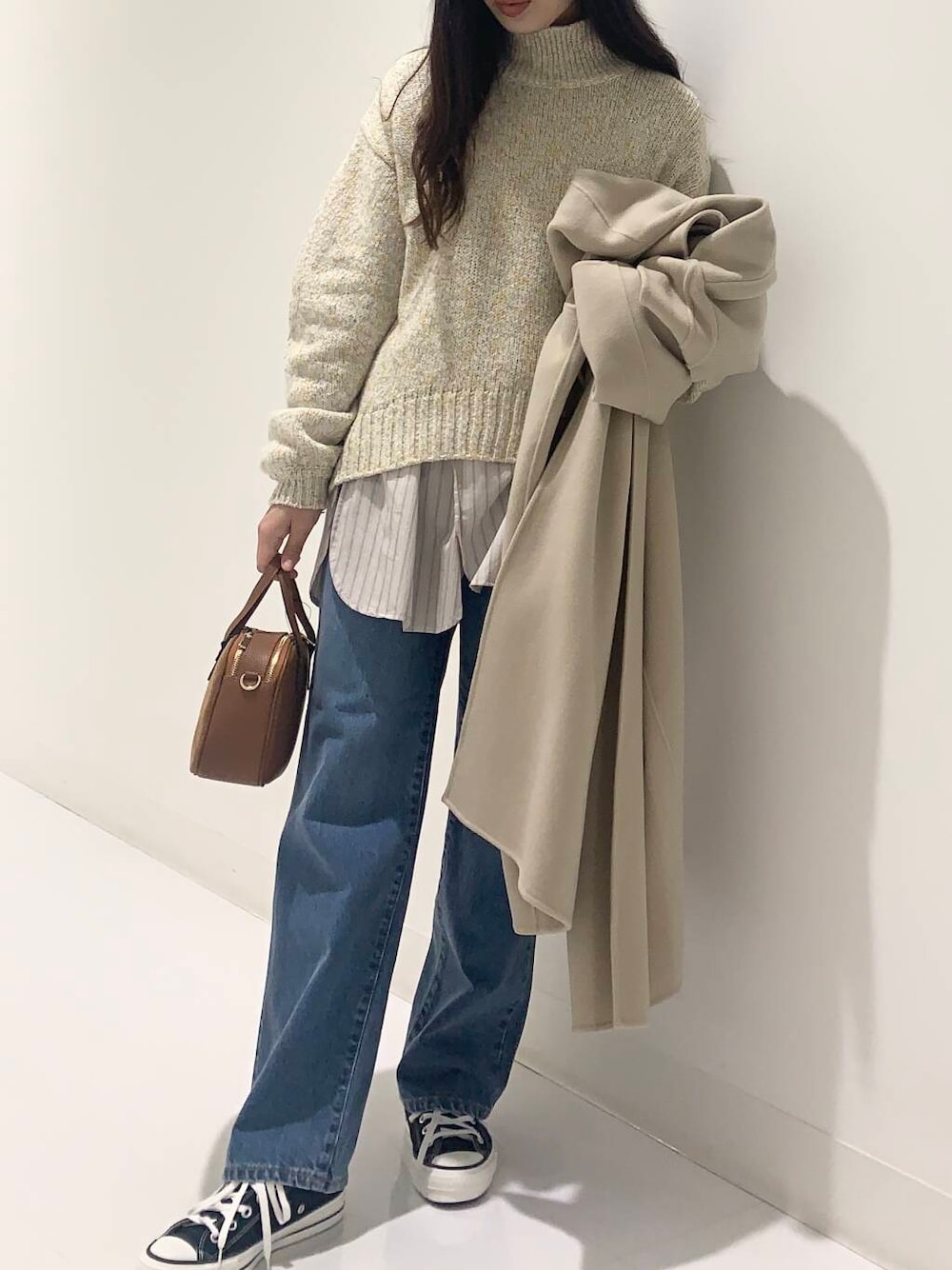 ほどよくゆとりもあるので中にニットも着やすくておすすめです。