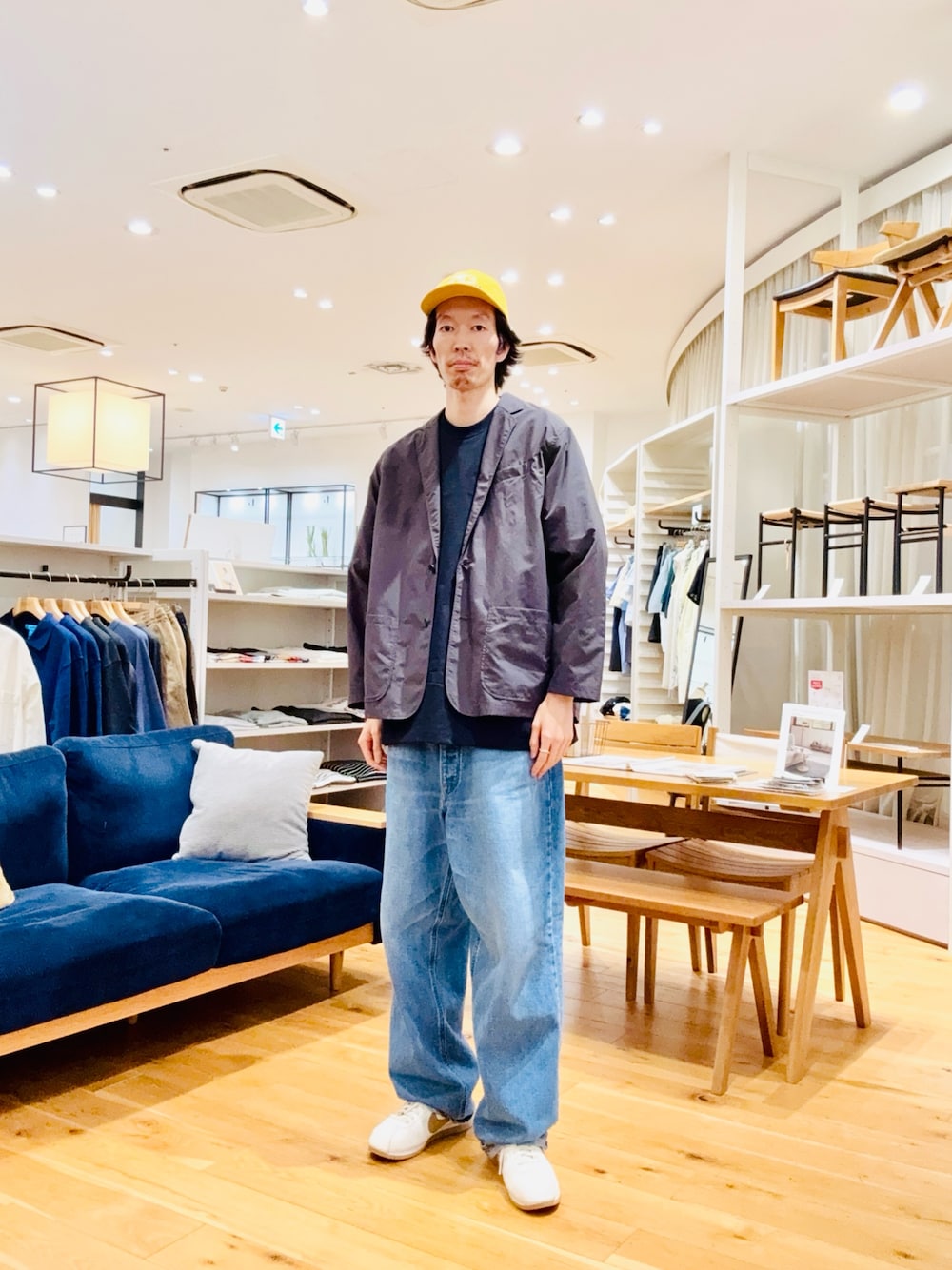 リラックス感のあるシルエットで中にスウェットなども着用していただけます。