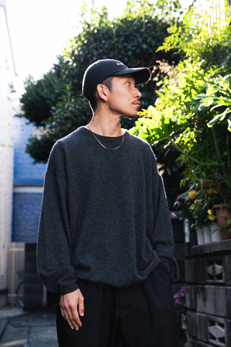 カシミヤ100%の着心地、温かさが病みつきなニット、サイズはオーバーサイズのスウェットを意識して作ってます。