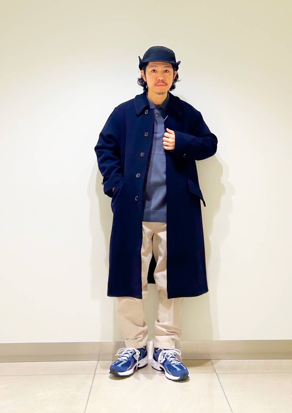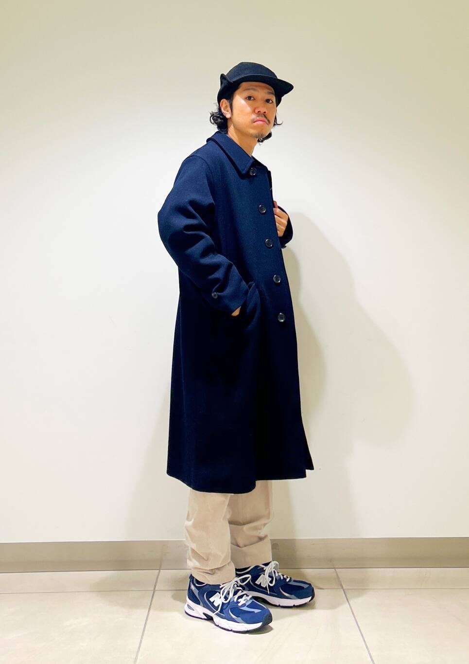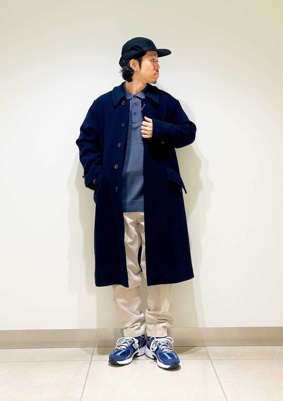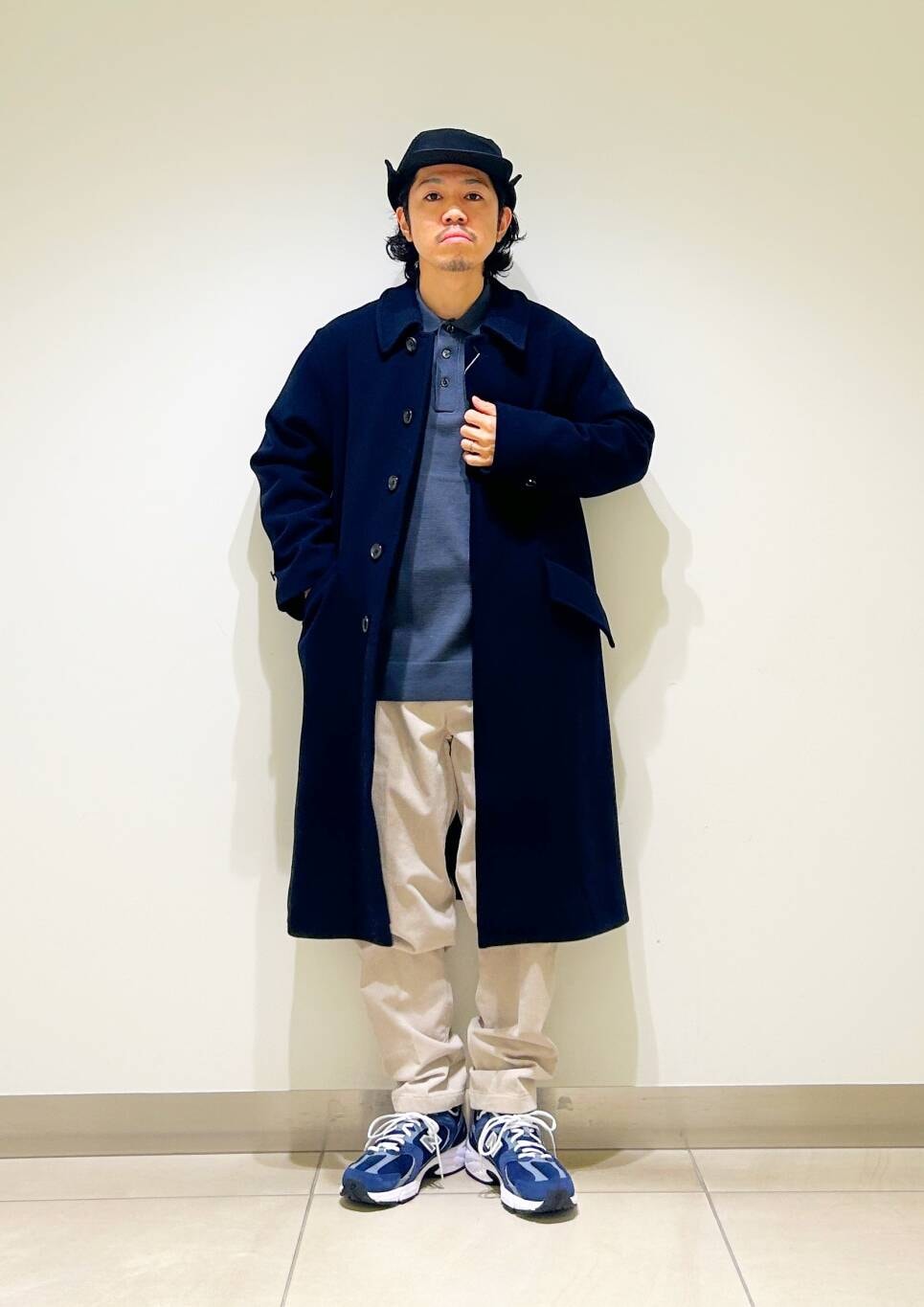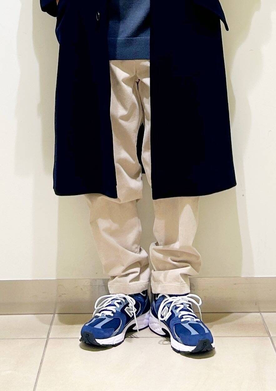 今回はバルカラーコートとコーデュロイトラウザーを使用したコーディネート。
