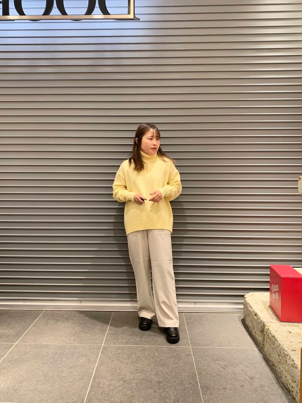 イエローのカラーのニットは派手すぎず、首元もタートルネックになっており暖かいです◎