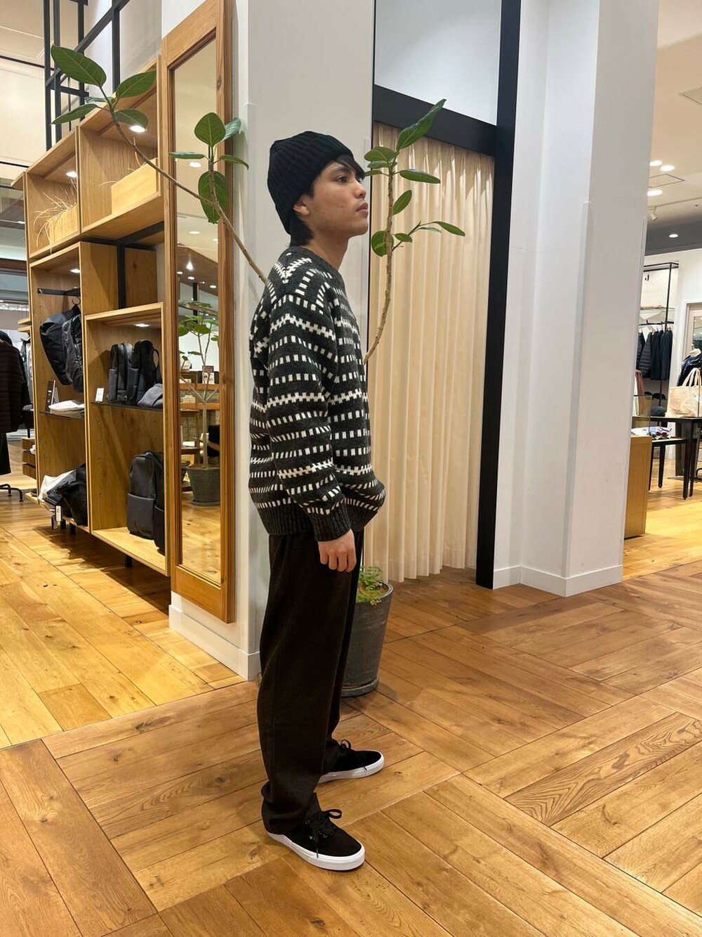 シンプル過ぎるとコーディネート的には味気ないのでニットは柄物を使うと映えます。