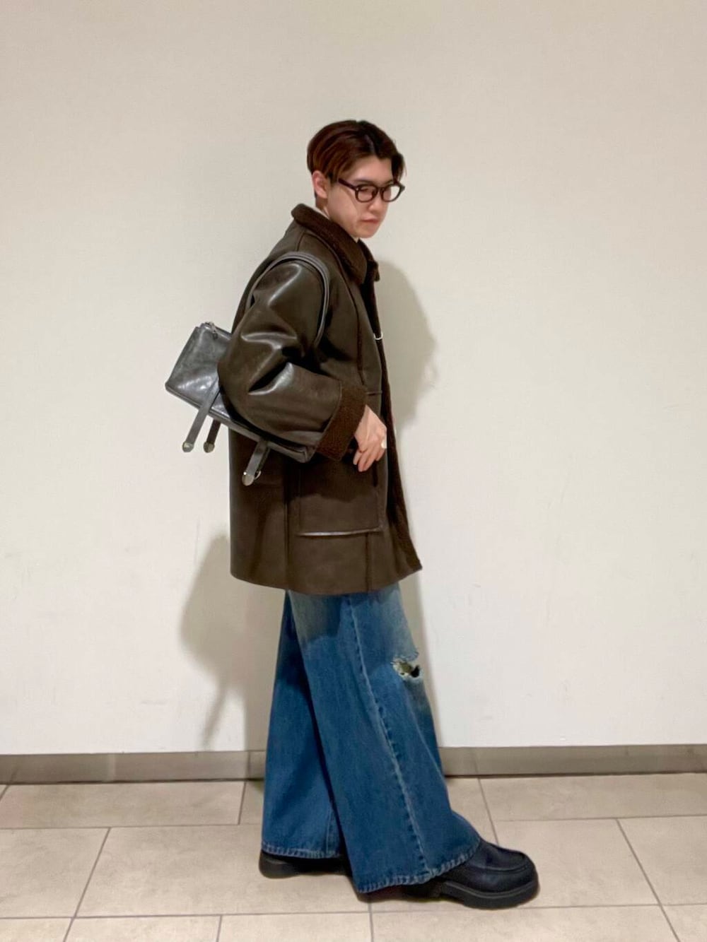 アウターはヴィンテージ感のある素材感のレザージャケットでリバーシブルになっているので気分によって変えることができます!!