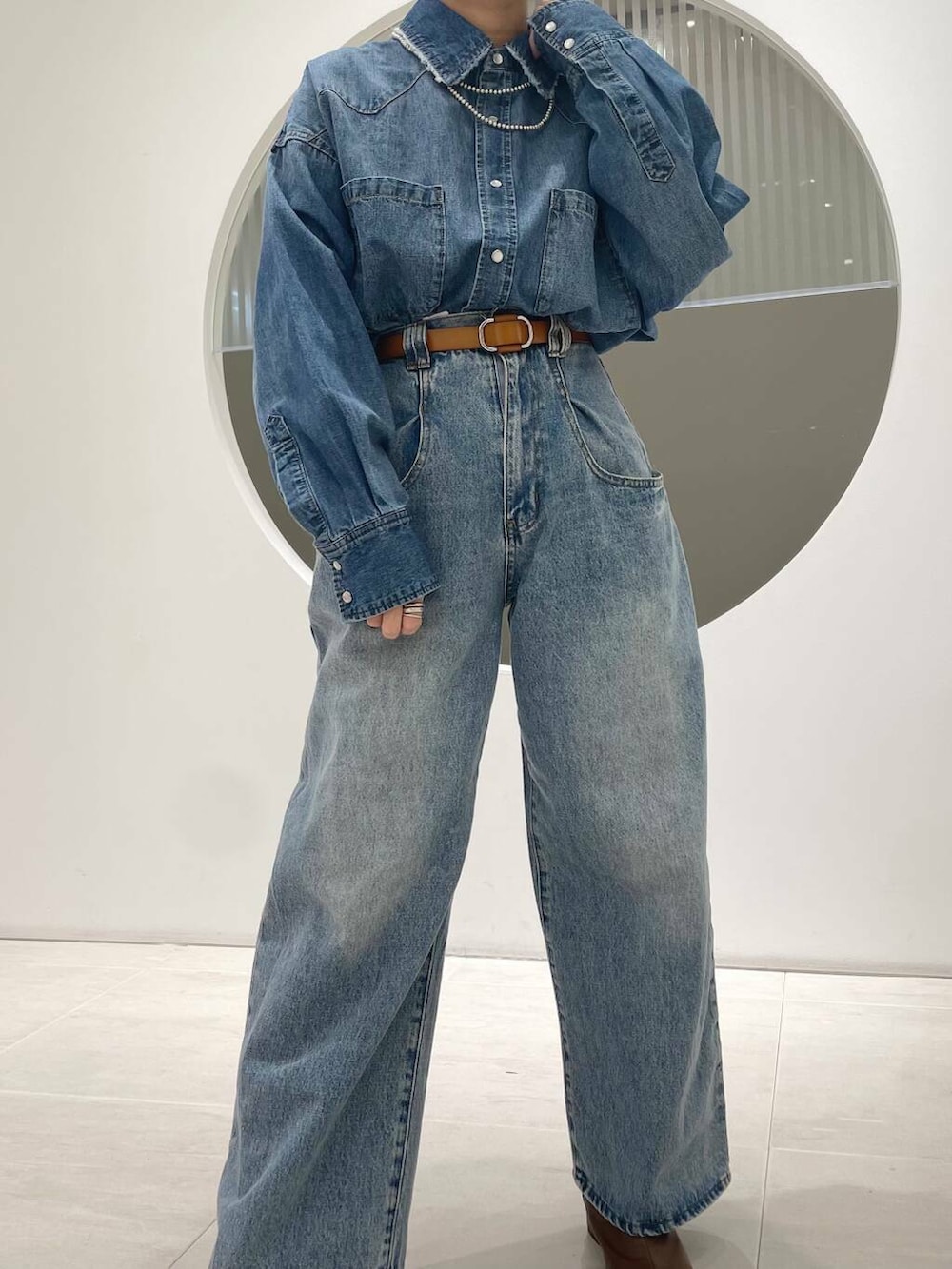 メインではもちろん、羽織りやレイヤードなどマルチWAYで使えるデニムシャツ。サイズ感はメンズサイズくらいゆったりしてます。フリンジデザインがポイント。