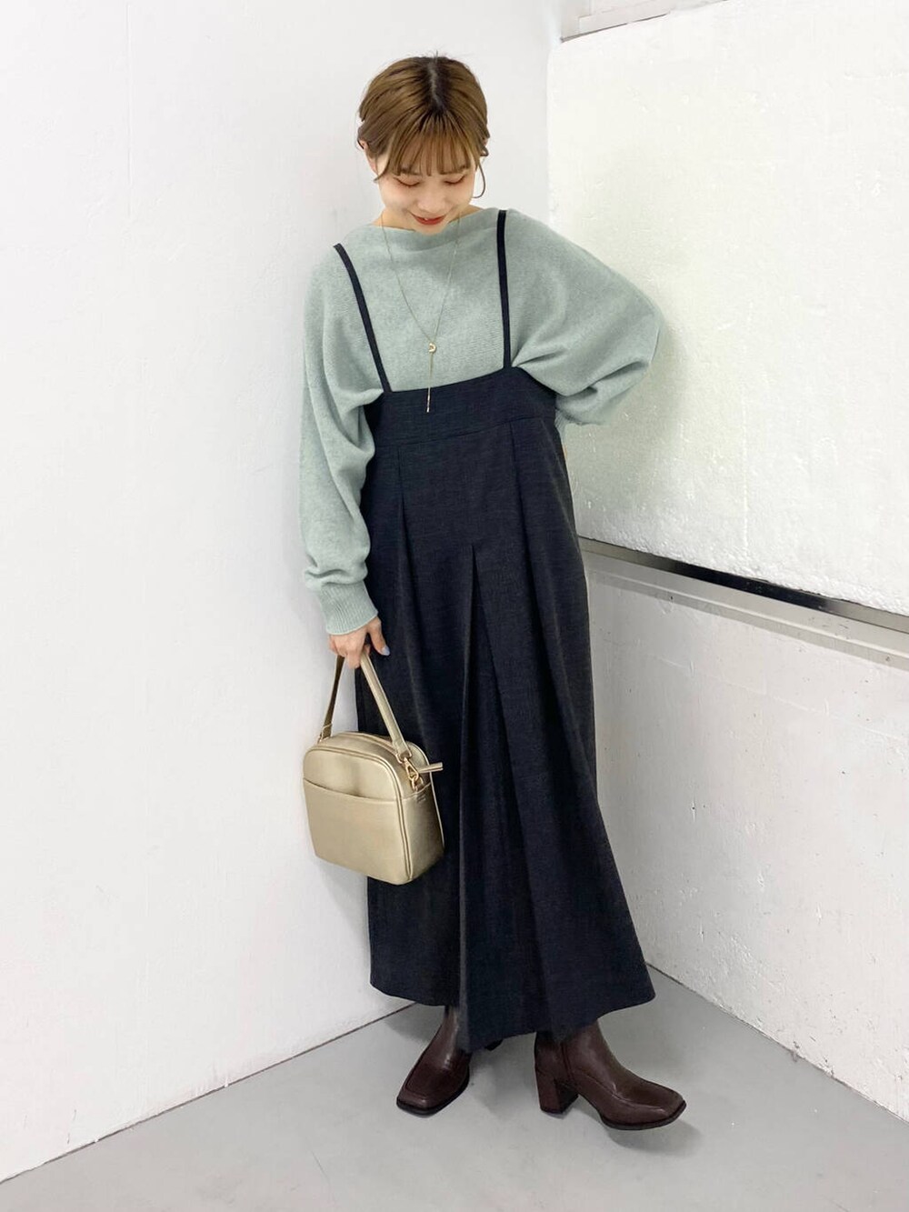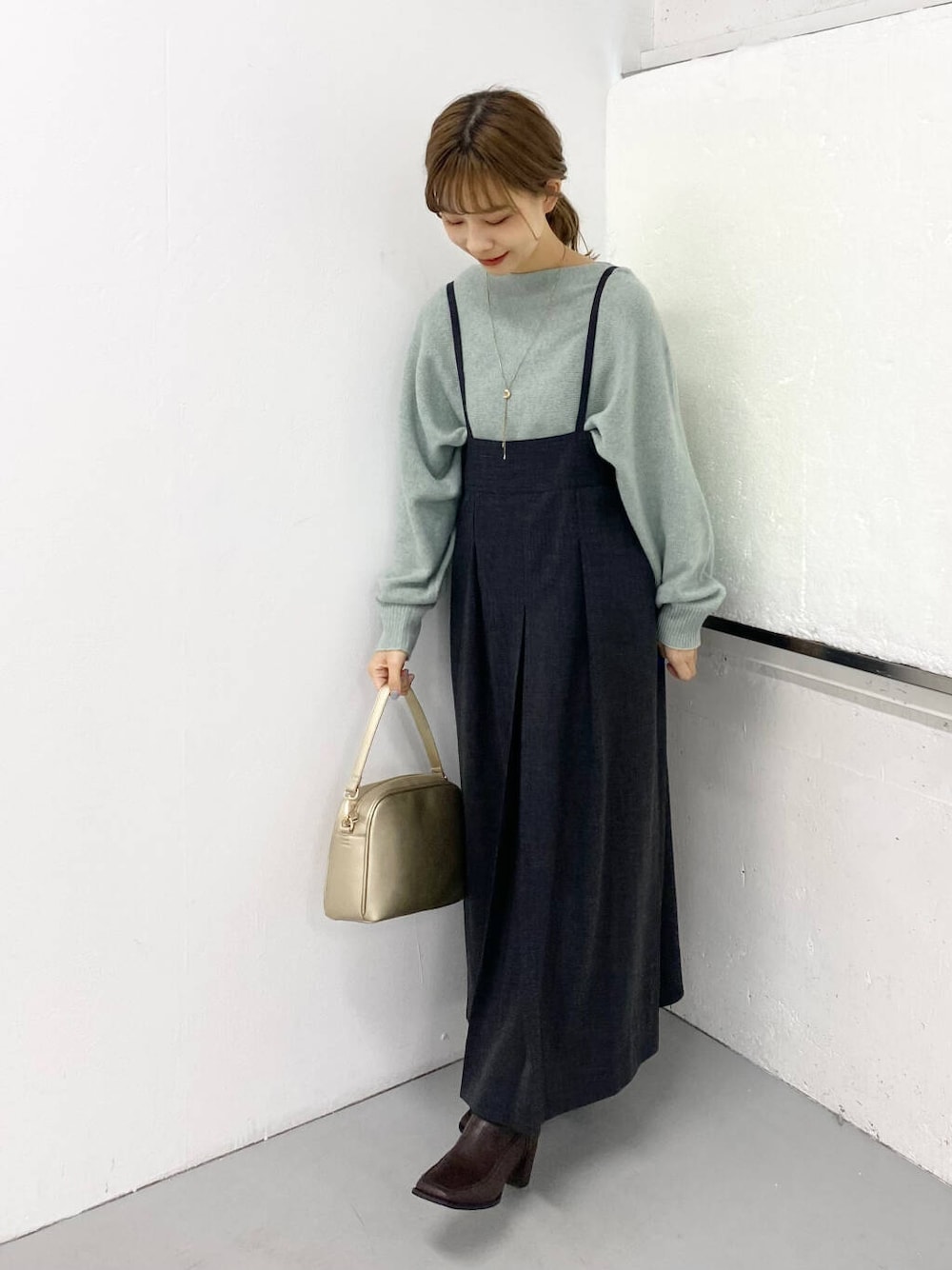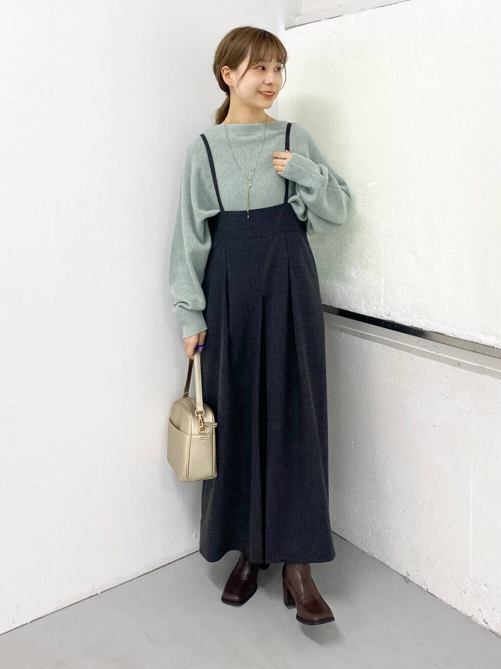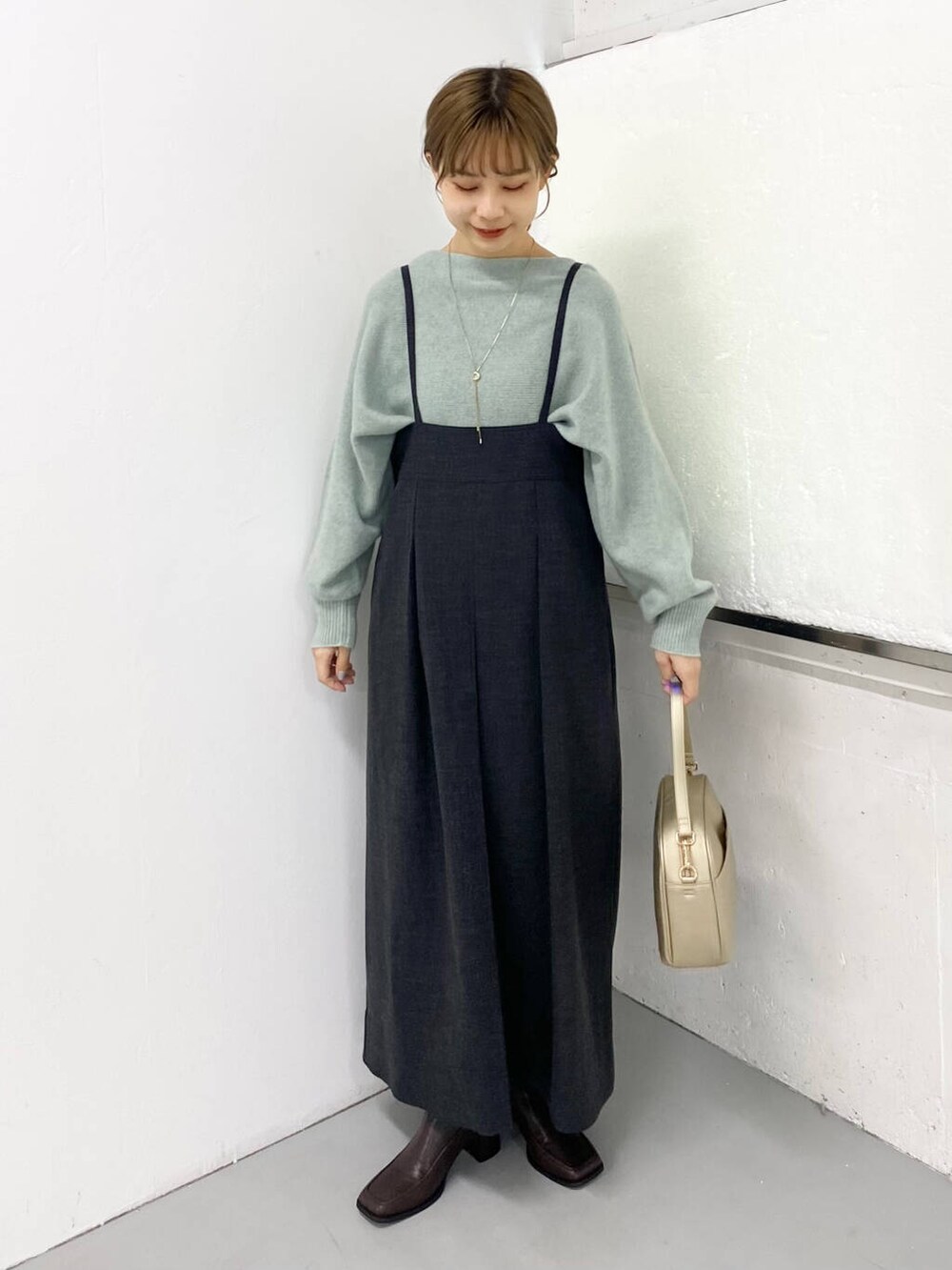 ニットは爽やかなミントカラーがとても綺麗で、顔周りも明るい印象になりオススメです^^