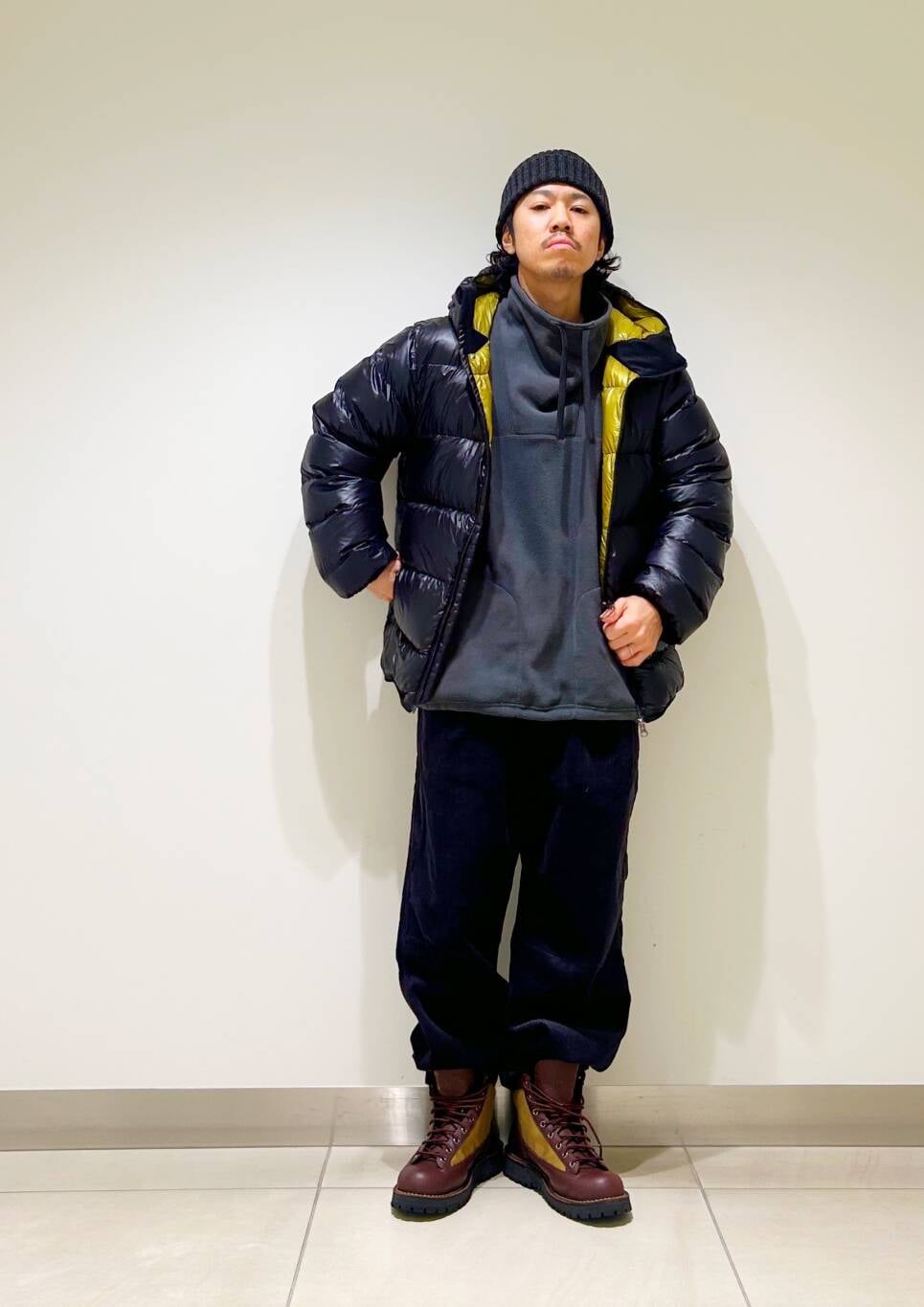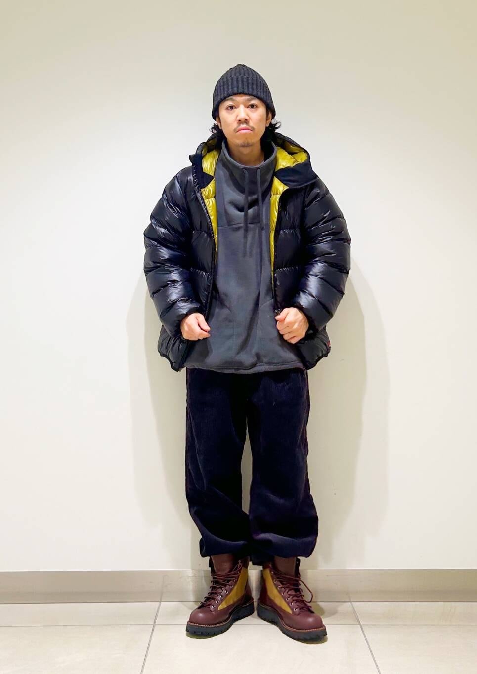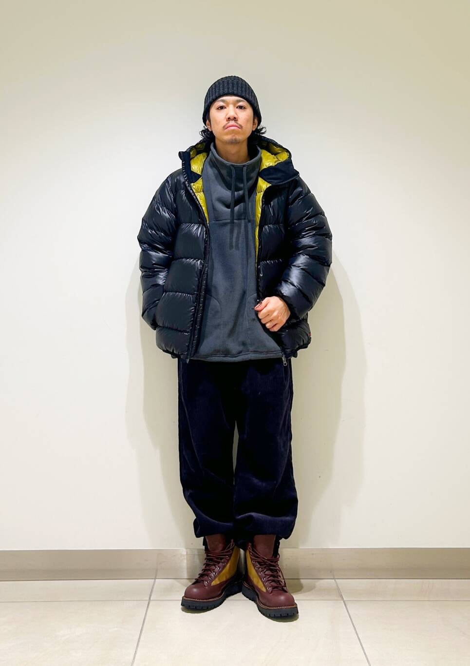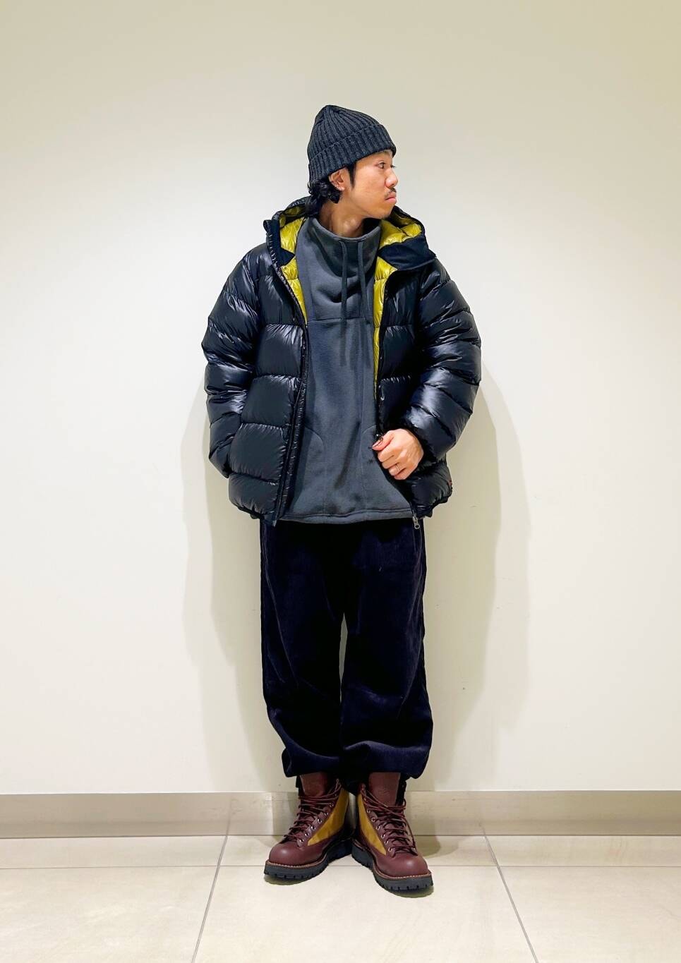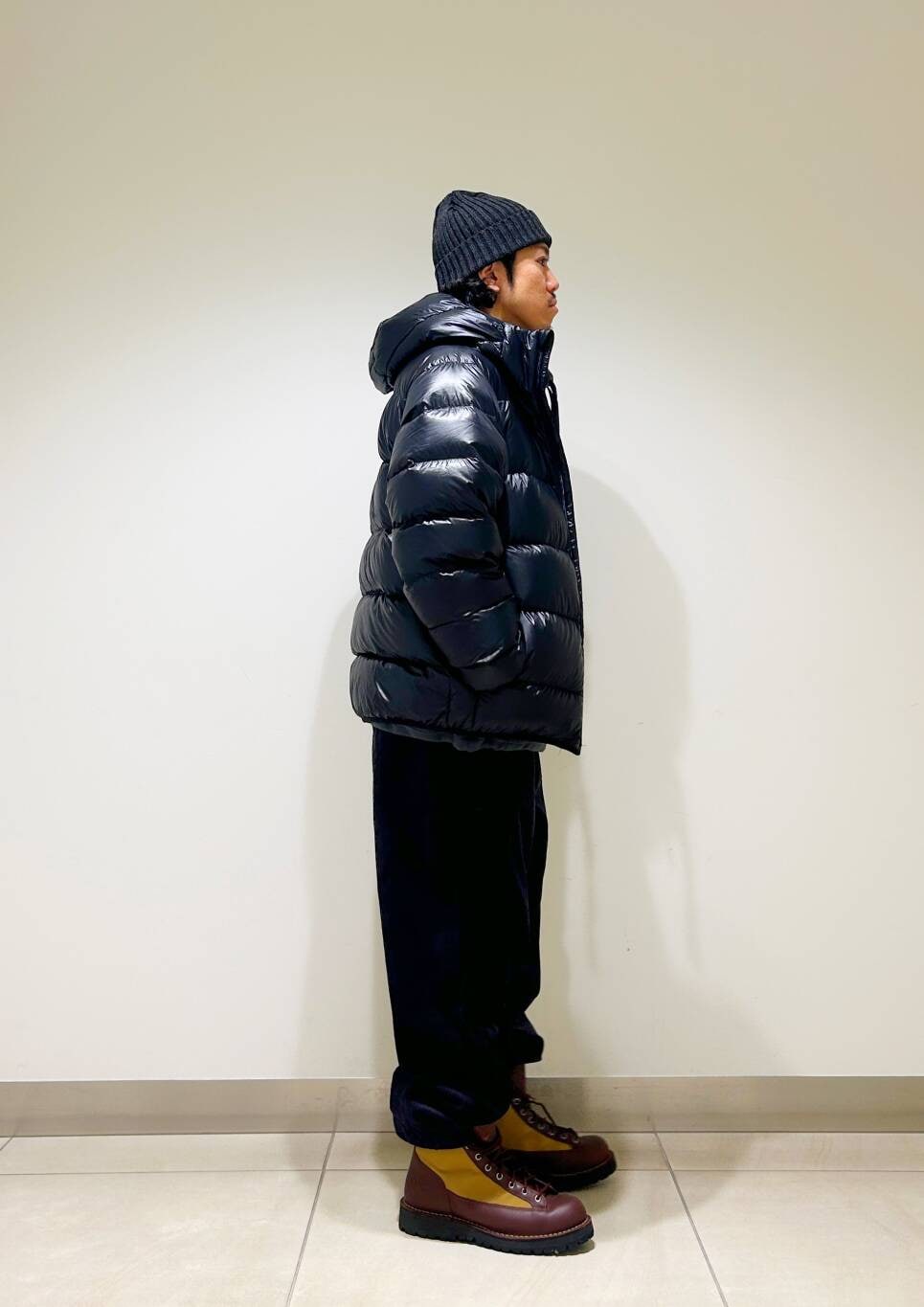 今回はnangaクラシックダウンとコーデュロイトラウザーを使用したコーディネート。