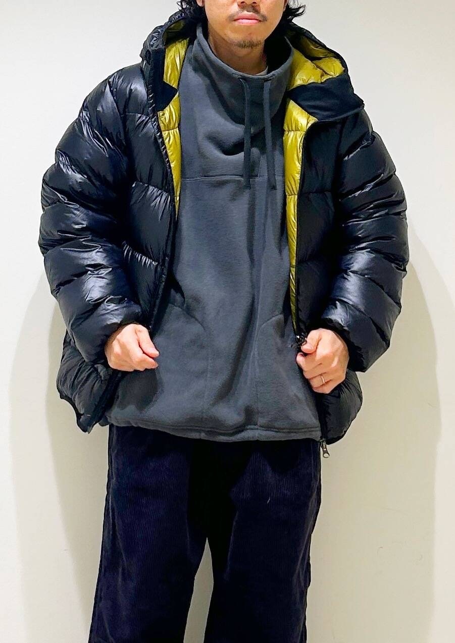 表地・裏地ともに10デニールナイロン(ミニリップストップ組織)を使用し、10Dナイロンの軽量さ、ダウンの暖かさとソフトな着用感をダイレクトに感じられる削ぎ落としたデザインが特徴です。