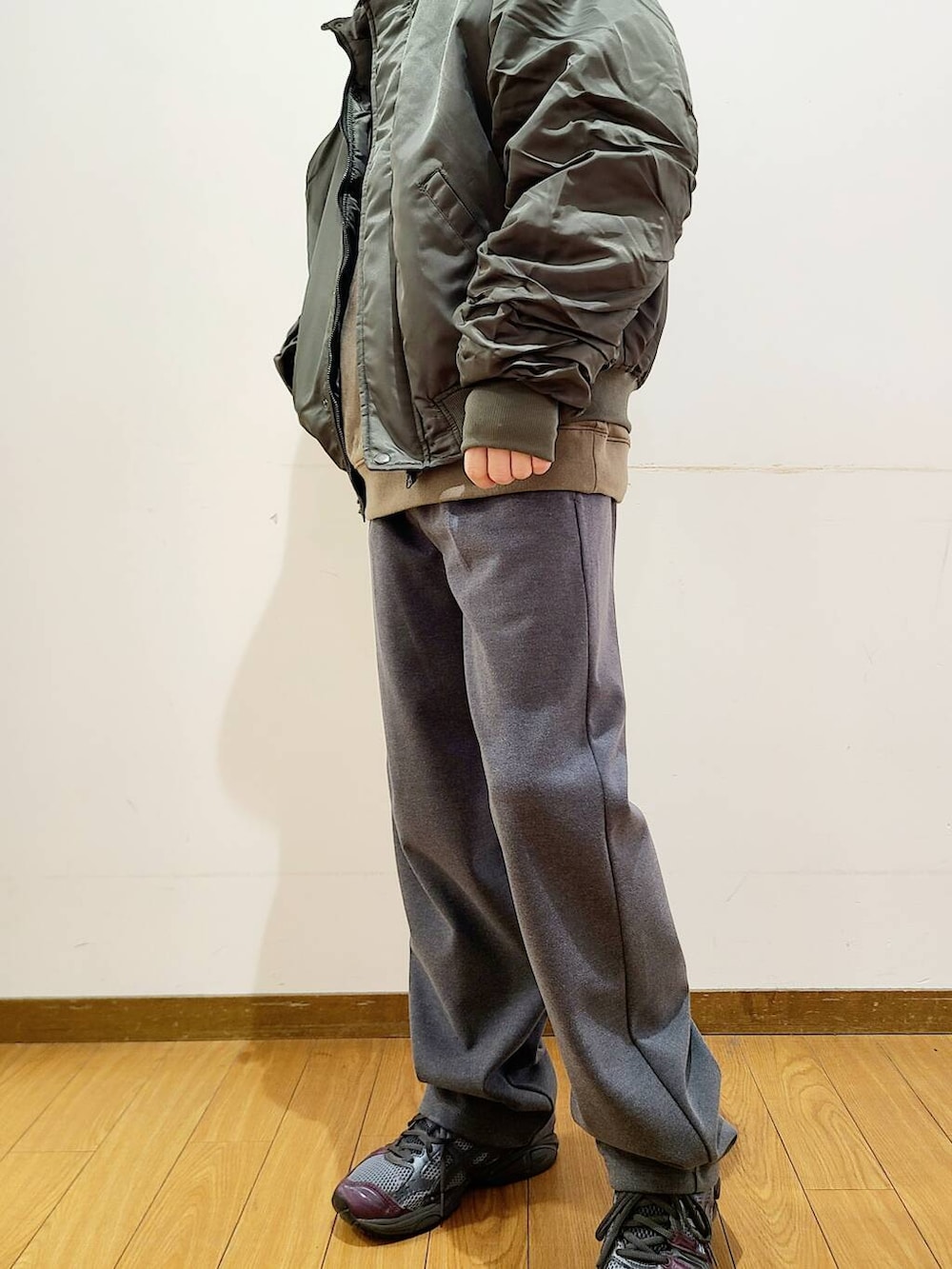センタープレスを施しやや細身のシルエットにすることで、気兼ねなく履けるきれい見えボトムスに仕上がっています。