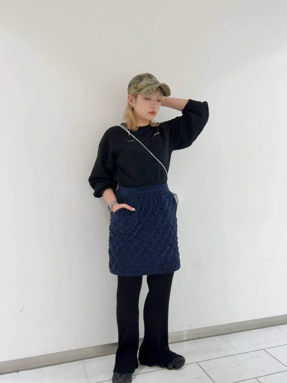 このリブパンツ細見え&かなり暖かいのでとてもおすすめです。。ボリュームある靴で履くと裾が広がって溜まってくれるので可愛く履けます₍ᐢɞ̴̶̷ ‧̫ ɞ̴̶̷ ྀིᐢ₎👍🏻カモフラ柄のキャップでわんぽいんとに🧢💚
