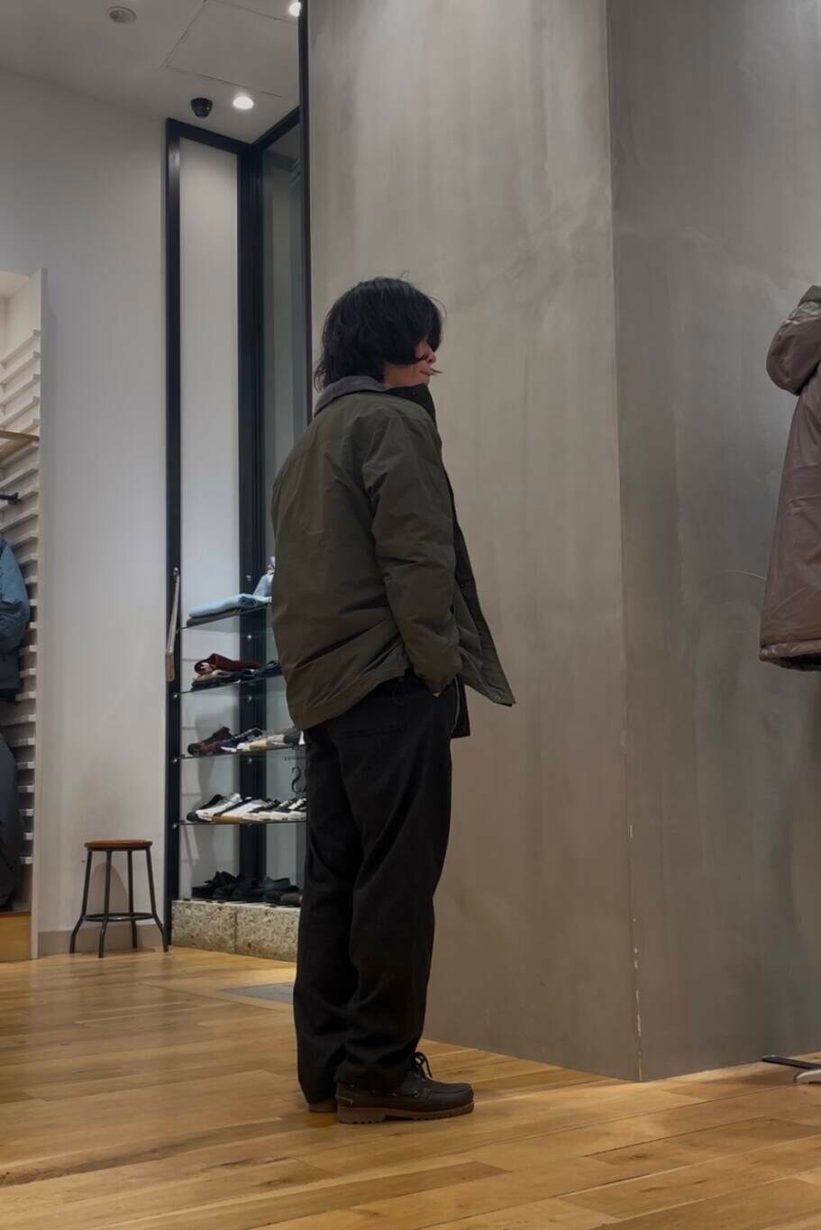 全体的にアースカラーでまとめ、無骨さの中に上品さを兼ね備えたコーデを意識しました。