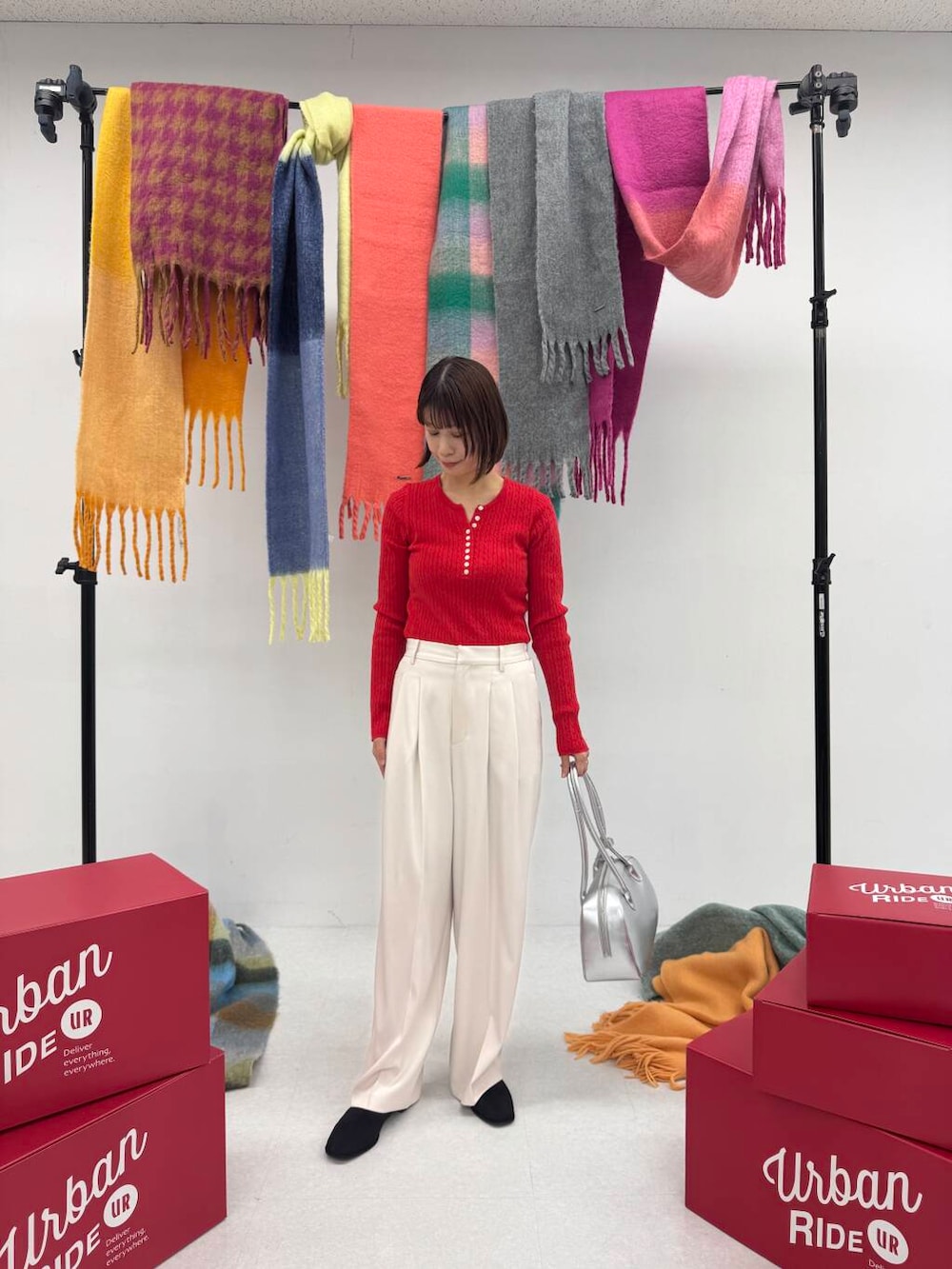 ホリデーシーズンにぴったりのレッドカラーのニットを使ってコーディネートを組んでみました🌟