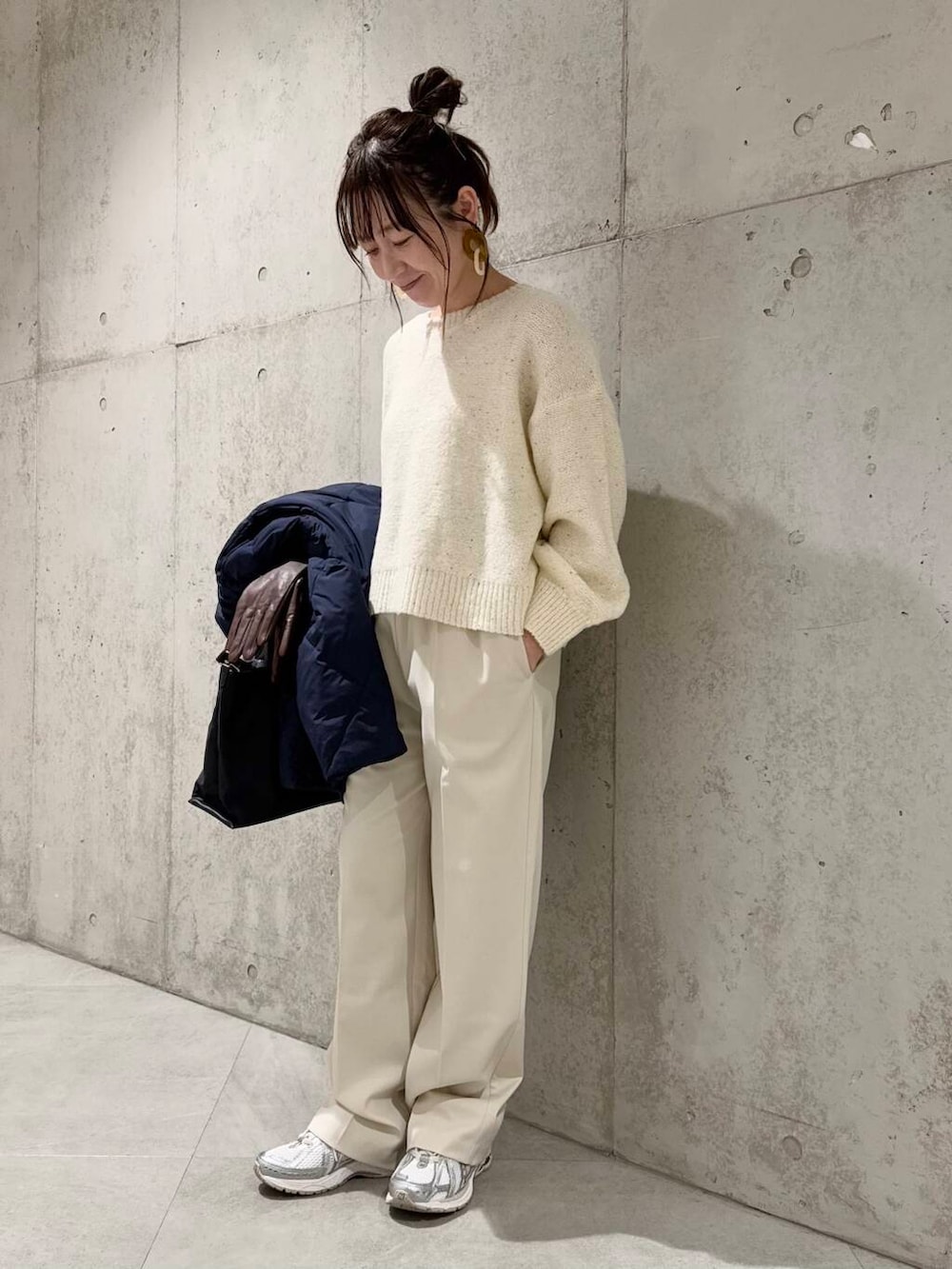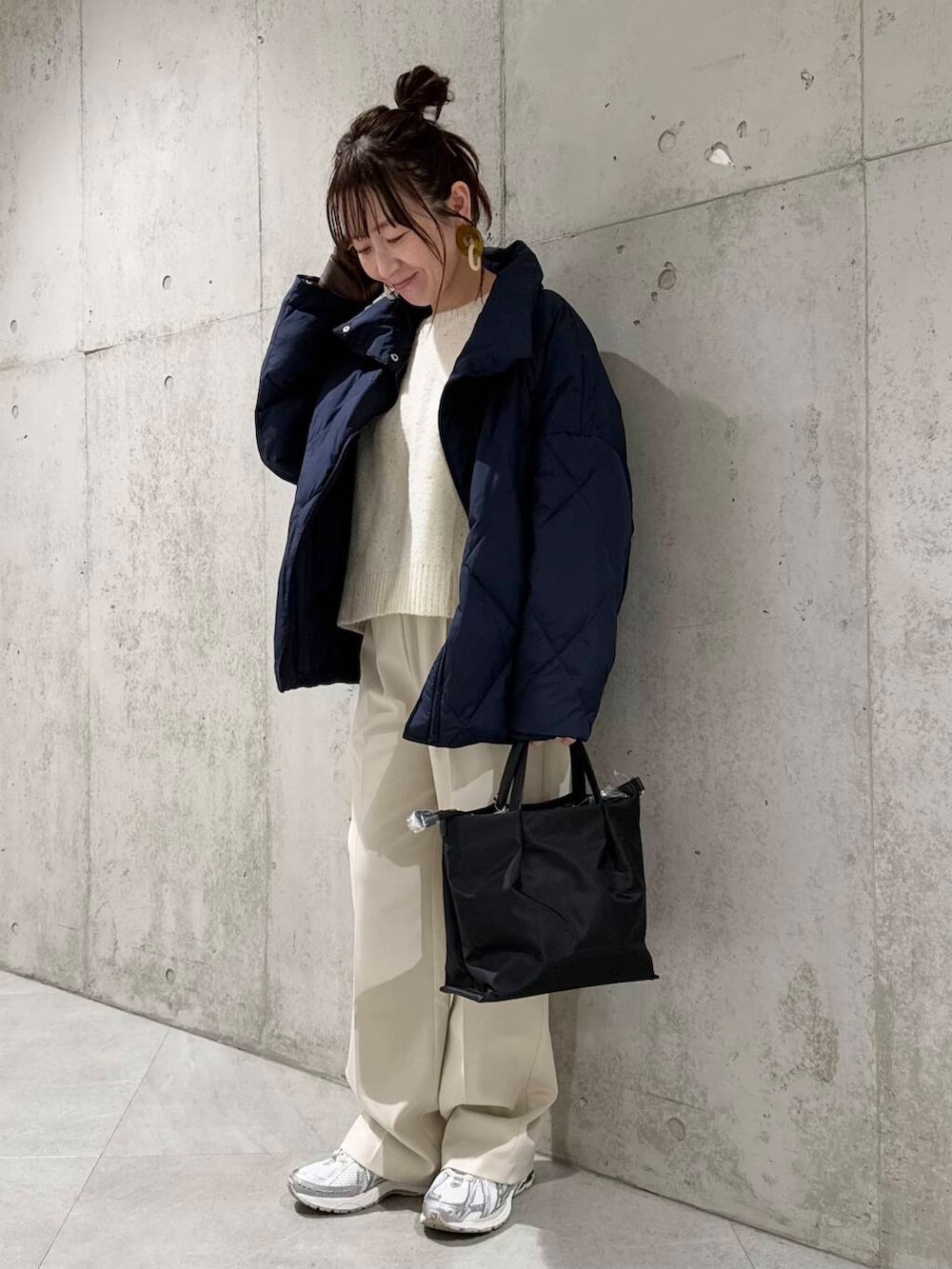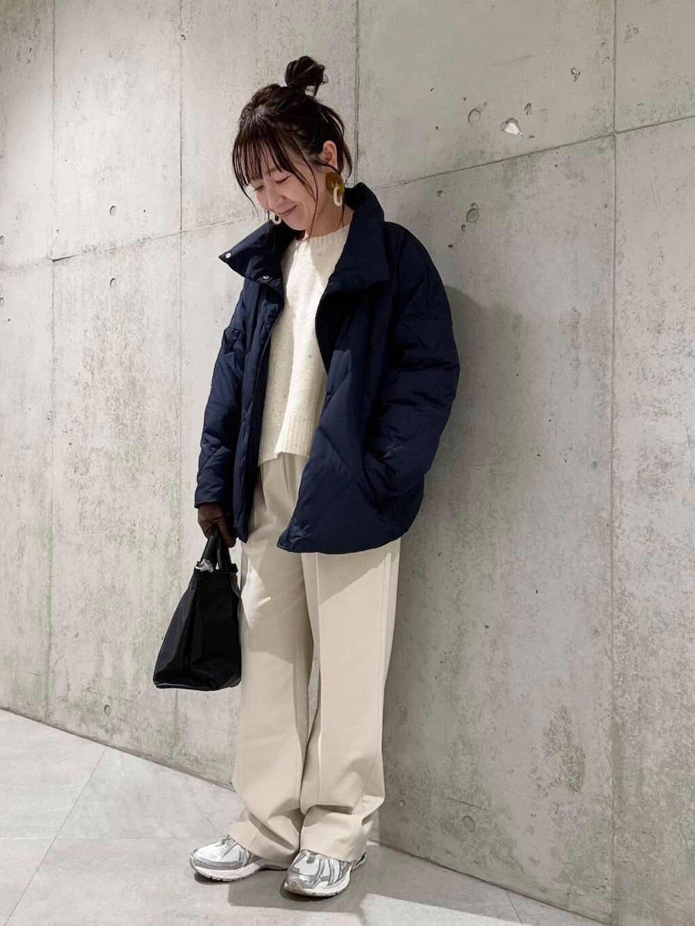 今回は、ホワイトコーデにネイビーのアウターを合わせて、メリハリのあるコーディネートにしてみました。