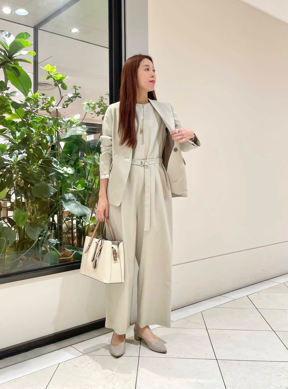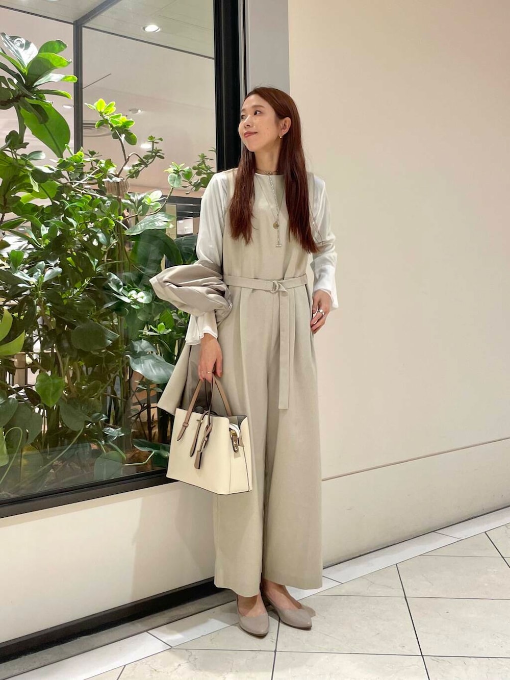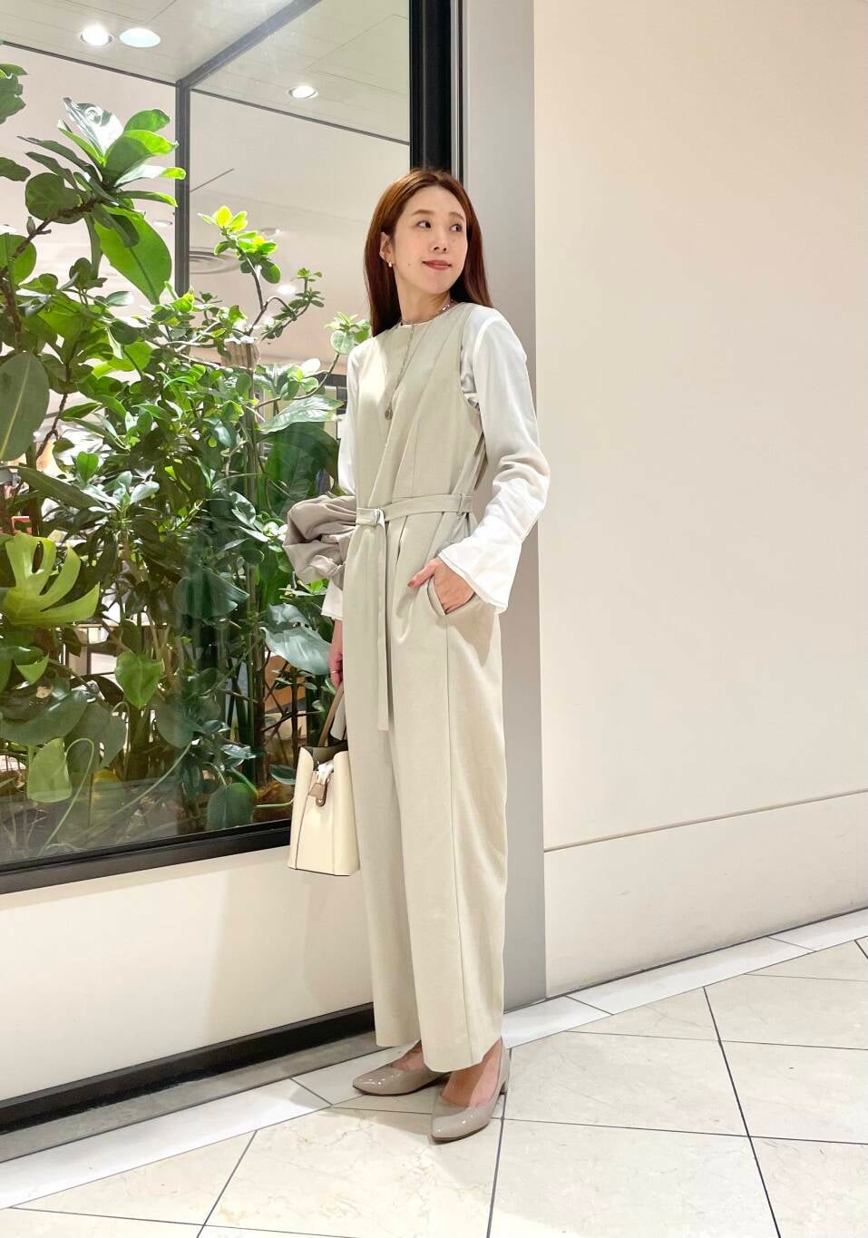 私が着ると、かかとはしっかり出る長さになります。
