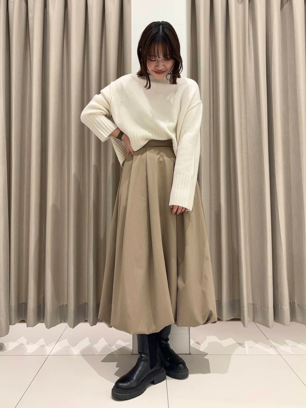 おすすめのクルーネックセーター×王道バルーンスカート合わせは、デートにもピッタリです!