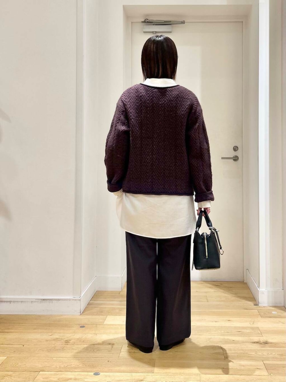 ヘリンボーンのような編み柄が特徴のニットを主役にコーディネートしてみました!