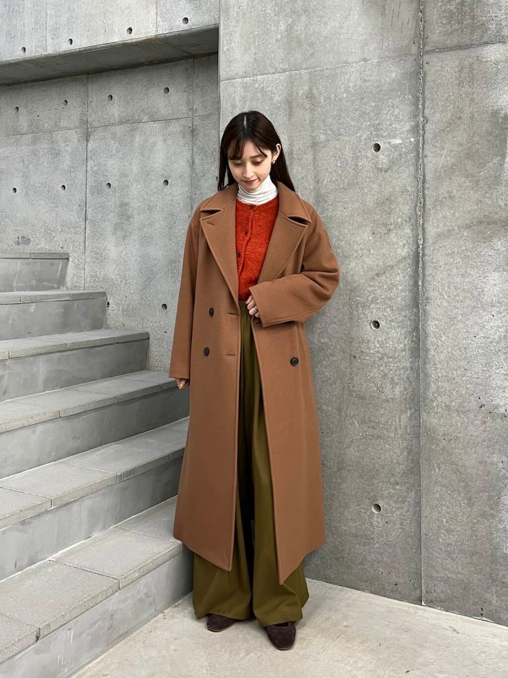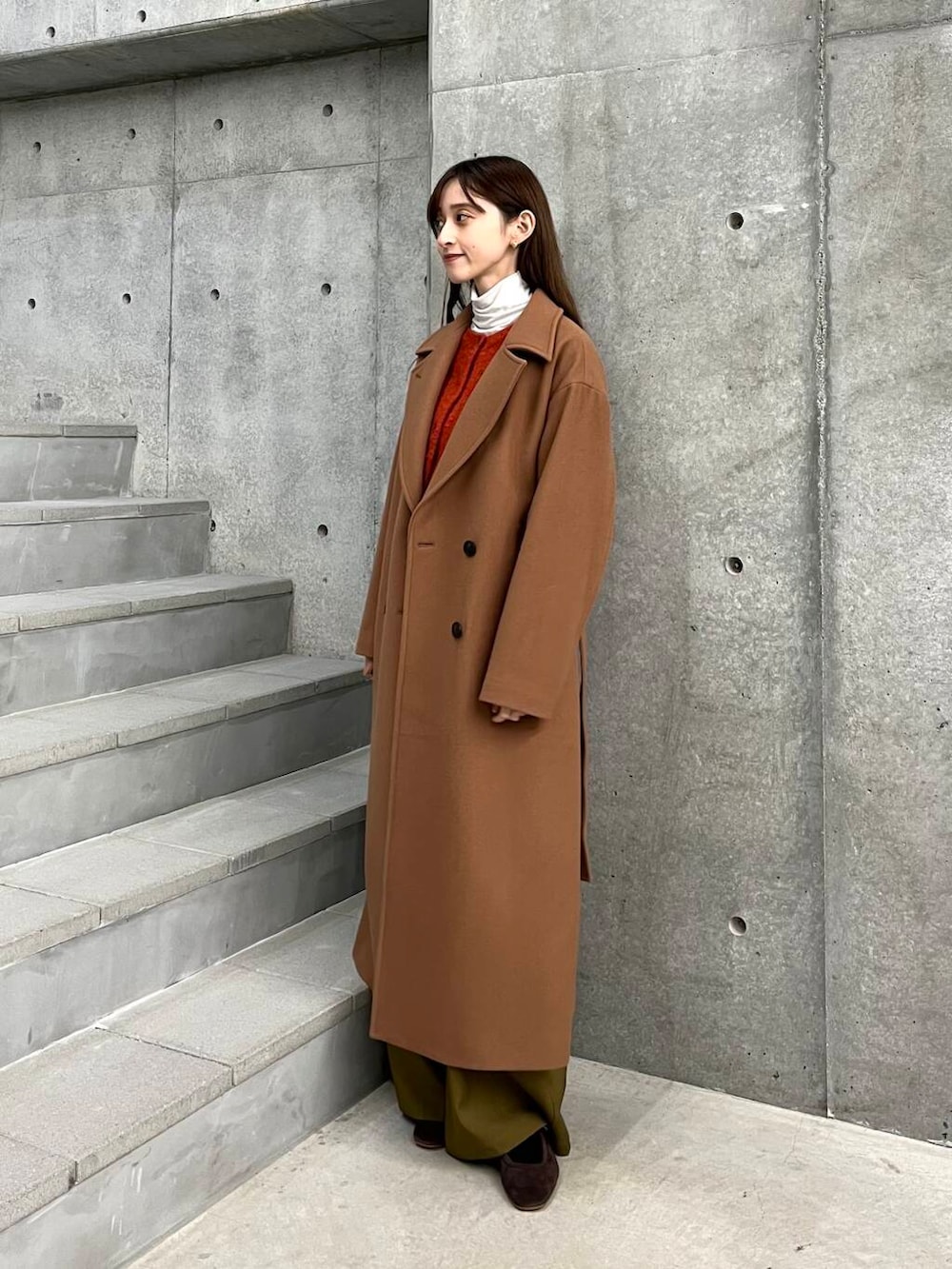 上質なウールを使用したロングコートで、羽織るだけで雰囲気のあるコーデになります✨
