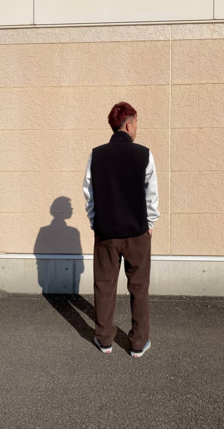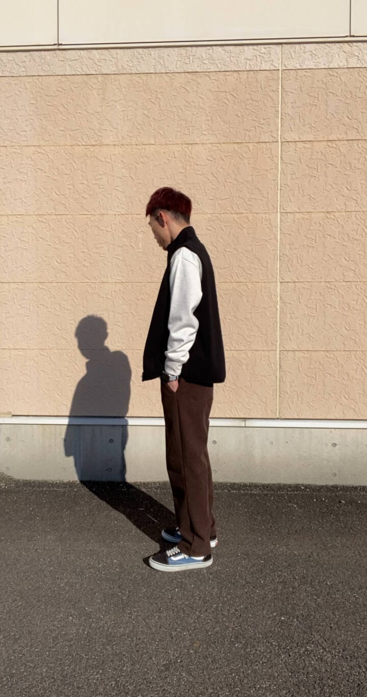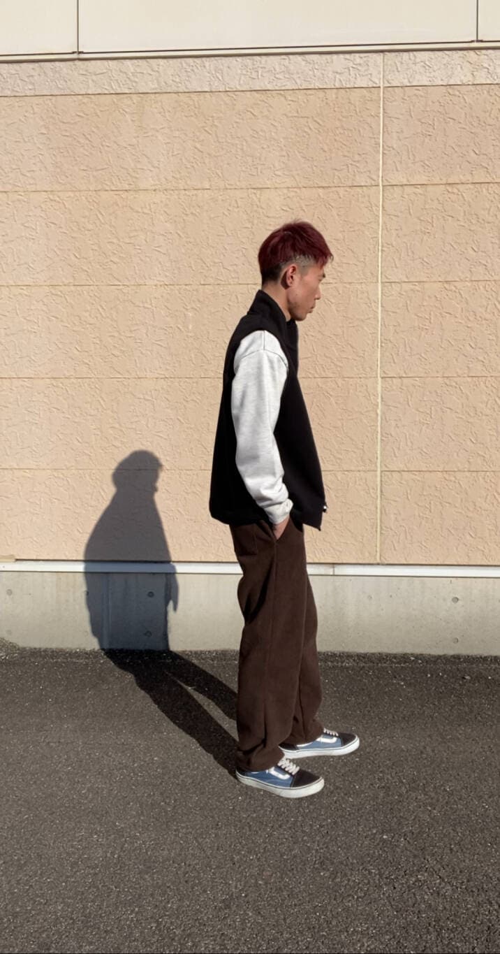 スウェットに裏フリースベストを合わせてシンプルなカラーでまとめました!