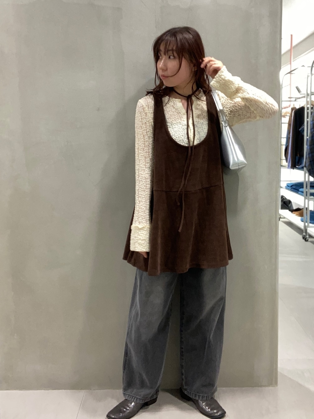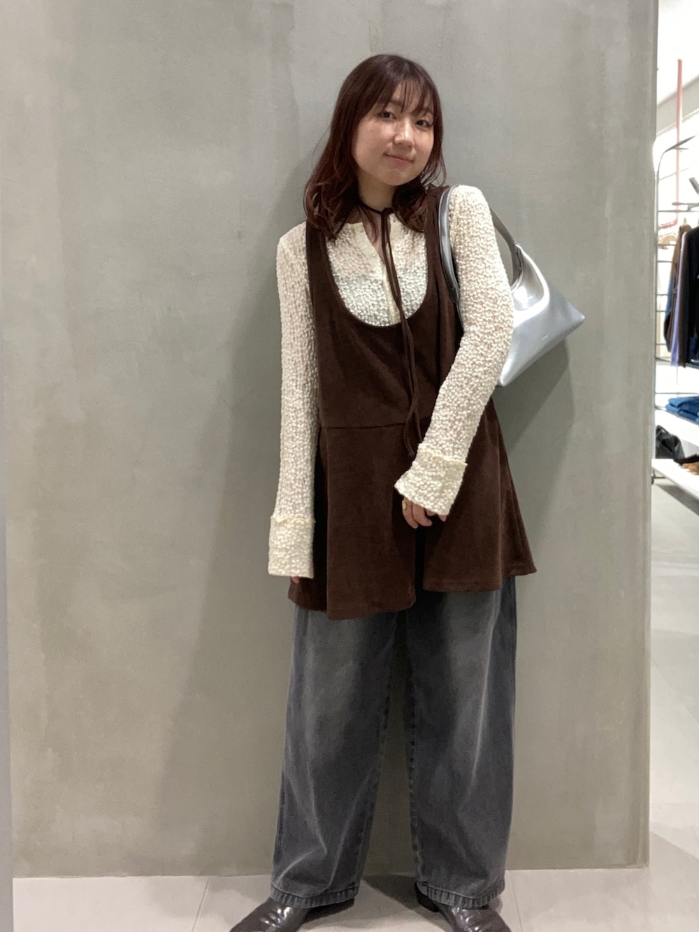 前後2WAYのミニワンピと合わせるときは、Uが深い方を前に着ると、ボタンを開けて首元すっきり女性らしく着れます✨